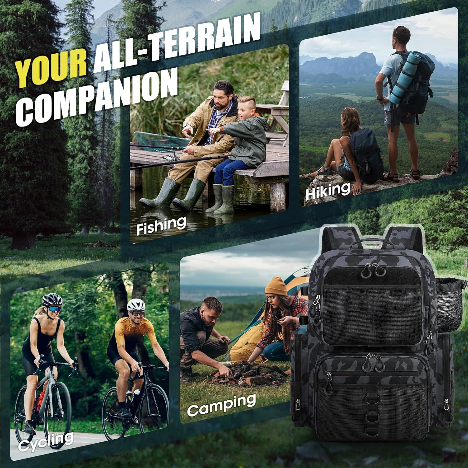 【PERFECT FOR ANY OUTDOOR ACTIVITY】Designed as a professional fishing tackle backpack, RAINSMORE fishing bag can hold all your fishing gear and is specially made for fishing enthusiasts and anglers. In addition to fishing, this large waterproof backpack is also ideal as a travel backpack for hiking, camping, sightseeing, exploring, cycling, working, or other outdoor sports. Perfect gift choice for men and women who love the outdoors.