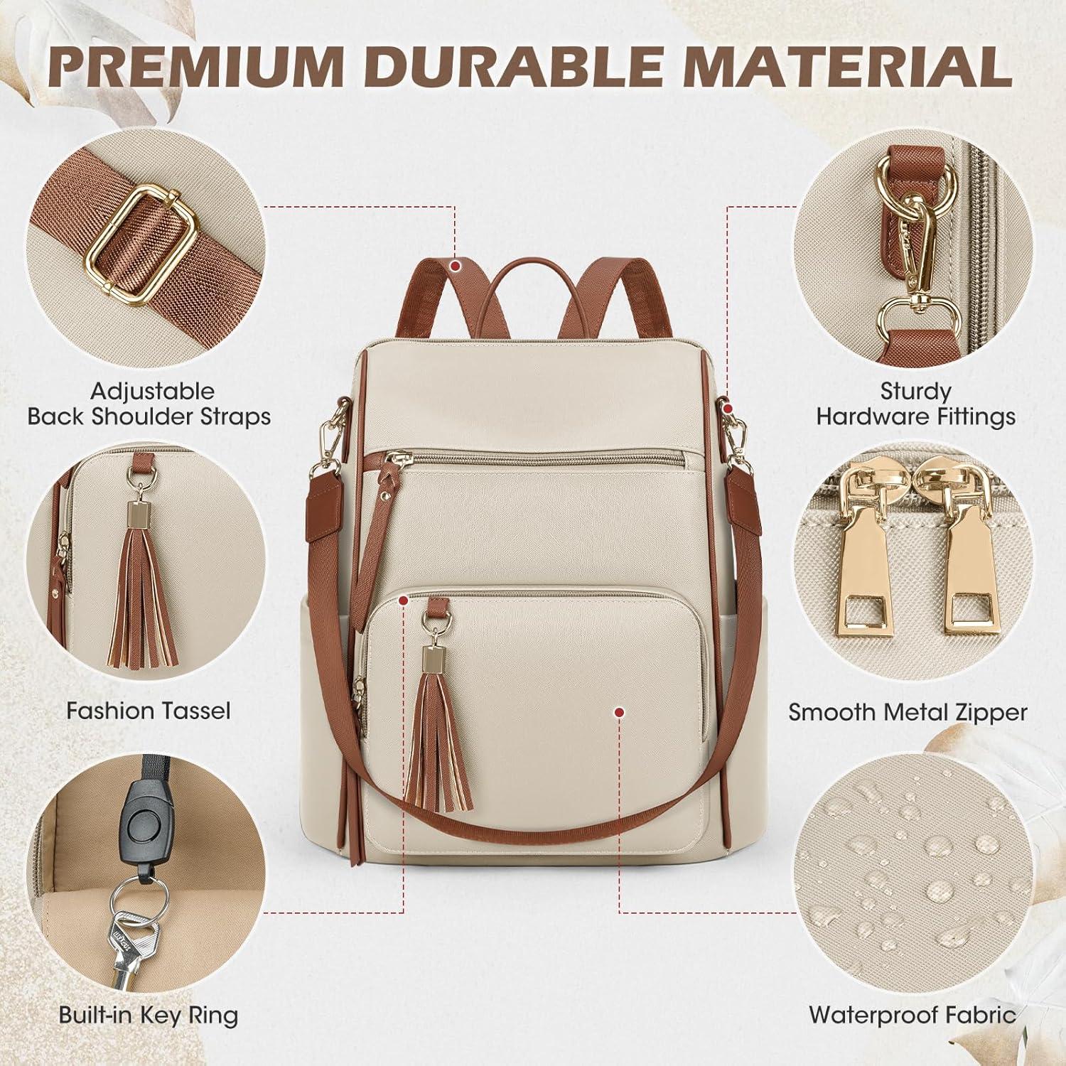 【Premium Material】: This backpack purse is made of high-quality waterproof & tear-resistant PU leather material with soft fabric lining, smooth zippers, and reinforced stitching for durability, and there is a cute tassel next to the front zip pocket, It adds a touch of sophistication to your collection of ladies' leather handbags and backpacks. All of these are fashionable and durable.