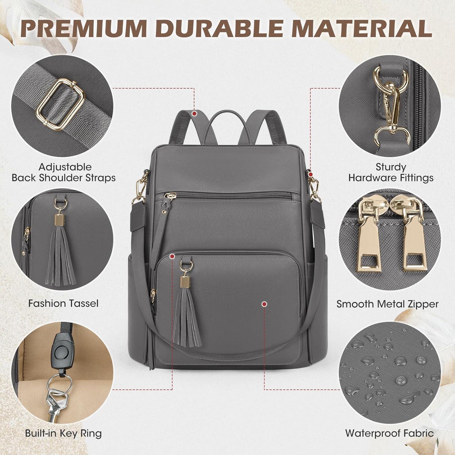【Premium Material】: This backpack purse is made of high-quality waterproof & tear-resistant PU leather material with soft fabric lining, smooth zippers, and reinforced stitching for durability, and there is a cute tassel next to the front zip pocket, It adds a touch of sophistication to your collection of ladies' leather handbags and backpacks. All of these are fashionable and durable.