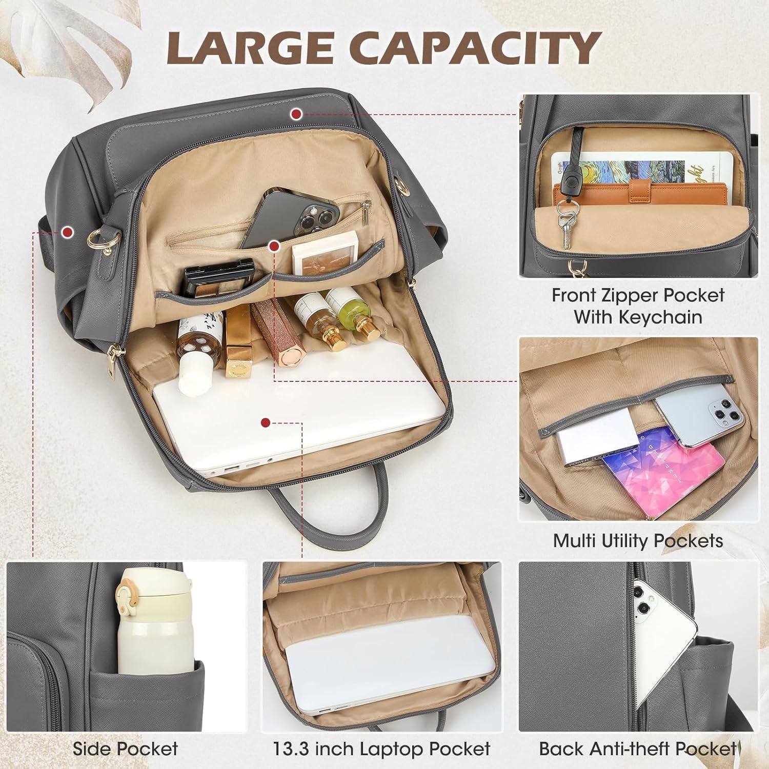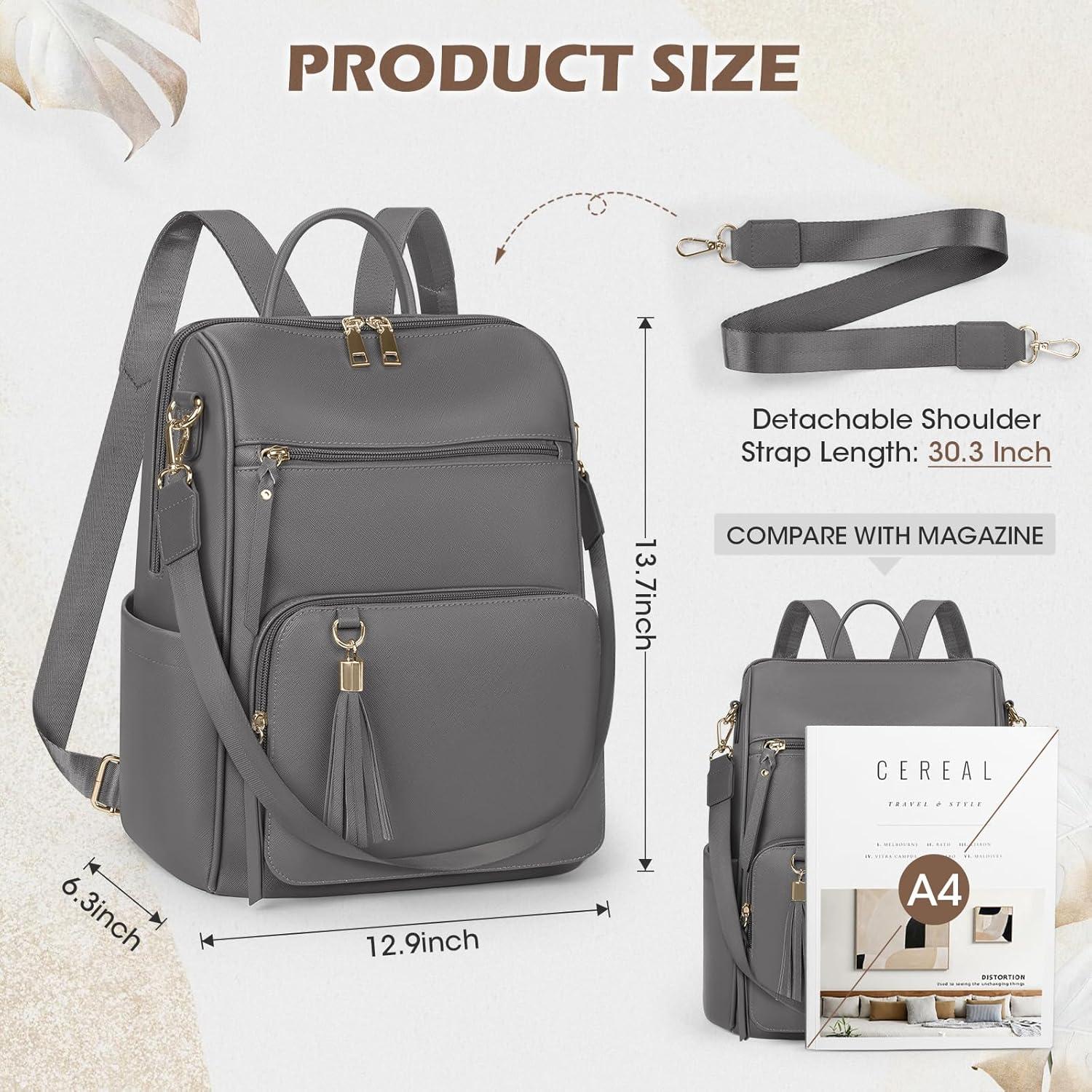 【Perfect Size & Large Capacity】Women leather backpack purse: 12.9*5.9*13.7 inch (L x W x H). Detachable shoulder strap length: 30.3 inches. Weight:1.98lbs. Different sizes of pockets are enough to hold your items. You can easily fit a 13.3 inch laptop, IPAD, kindle, office papers, cell phones, water bottles, clothes, etc into the large backpack purse for a business trip. This womens backpack purse is suitable for daily use or study, as well as short trips of one or two days.