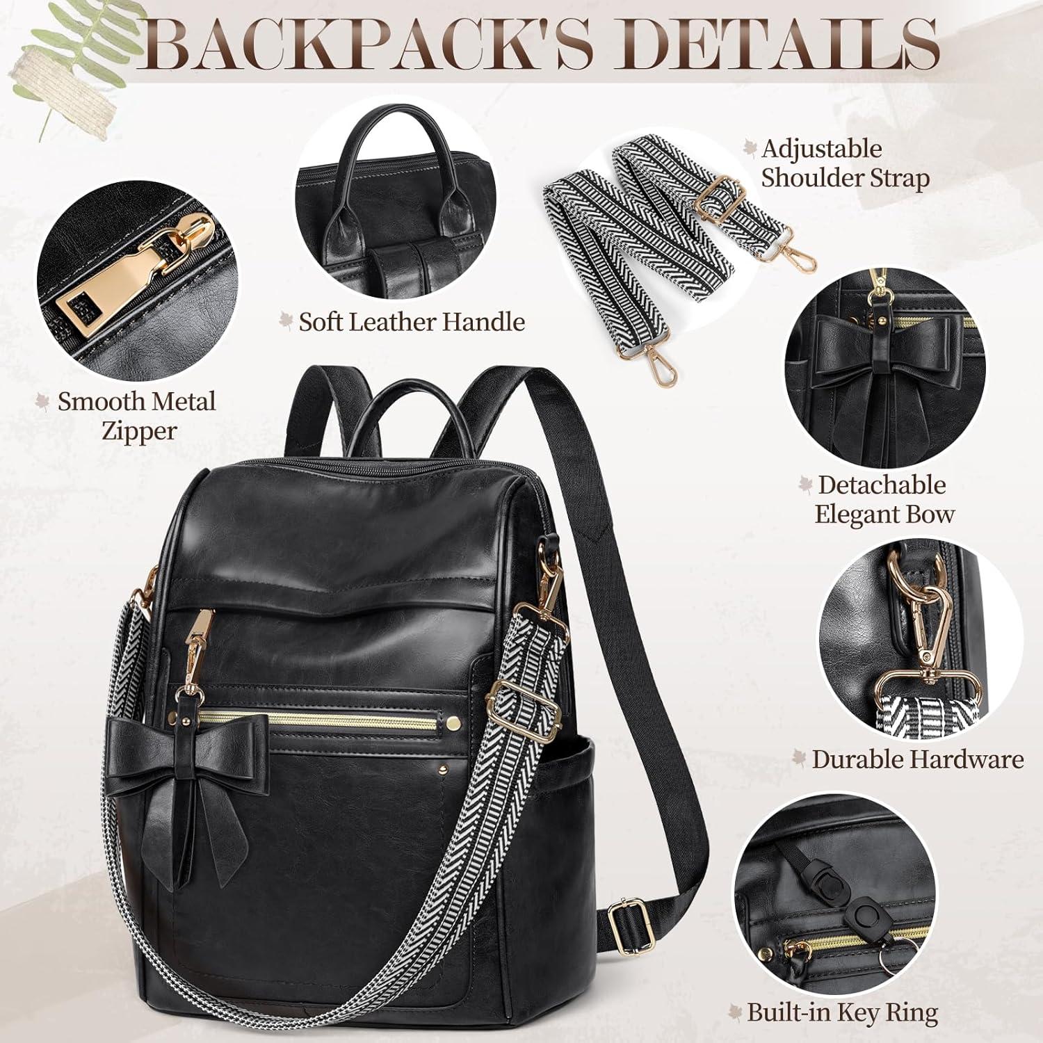 【FASHION & PRACTICAL BACKPACK PURSE FOR WOMEN】This small women's backpack purse is simple and chic, which can be matched with various outfits and occasions. Comes with a detachable premium bow, adds more feminine sophisticated charm to this cute backpack purse. Extra with removable colorful shoulder straps, easy to convert a travel backpack into a shoulder bag or a handbag for use, making this mini backpack purse suitable for most people's needs