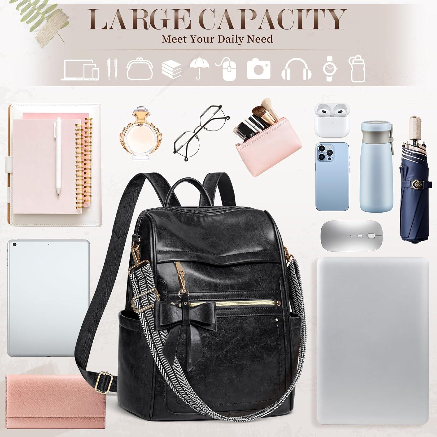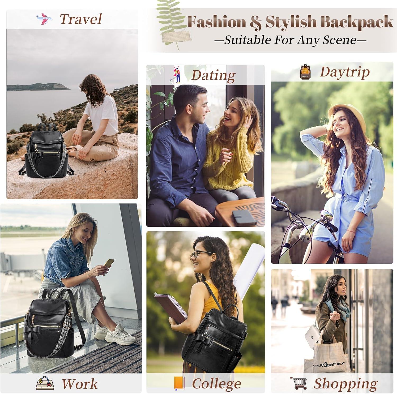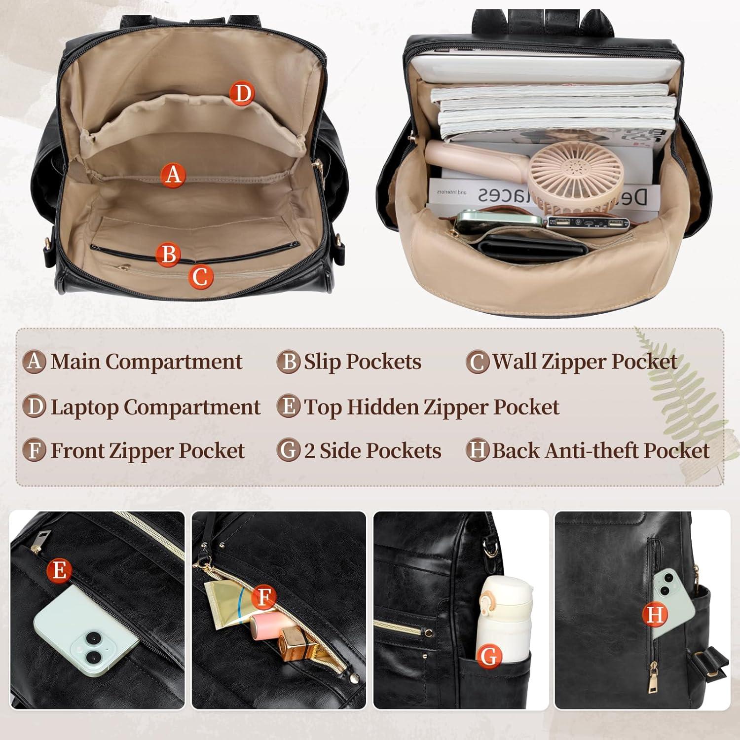 【MULTIPLE POCKETS WOMENS BACKPACK】Features a rich pocket design, this womens backpack purse meets all your needs. Main compartment features padded laptop sleeve that holds a 12.9″ Laptop or other devices; 1 zipper pocket; 2 slip pockets 2 side pockets for bottles or umbrellas; 2 front zipper pockets hold your lipsticks, chargers or passport for easy access; 1 back anti-theft pocket for card and wallet. Blending security with ease of use, this backpack for women is the perfect everyday work bag.