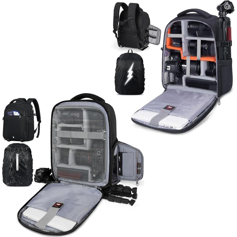 【CAMERA PROTECTION SYSTEM】Filled 16mm thicken foam all around the camera backpack and in the laptop compartment to ensure your camera and computer equipment are fully protected.The camera backpack's main zipper and side access pockets are both designed with anti-theft zippers for enhanced security.plus,our camera bags for photographers uses high-quality water-resistant oxford fabric and comes with a waterproof rain cover with reflective strip to provide all-weather protection for your camera.