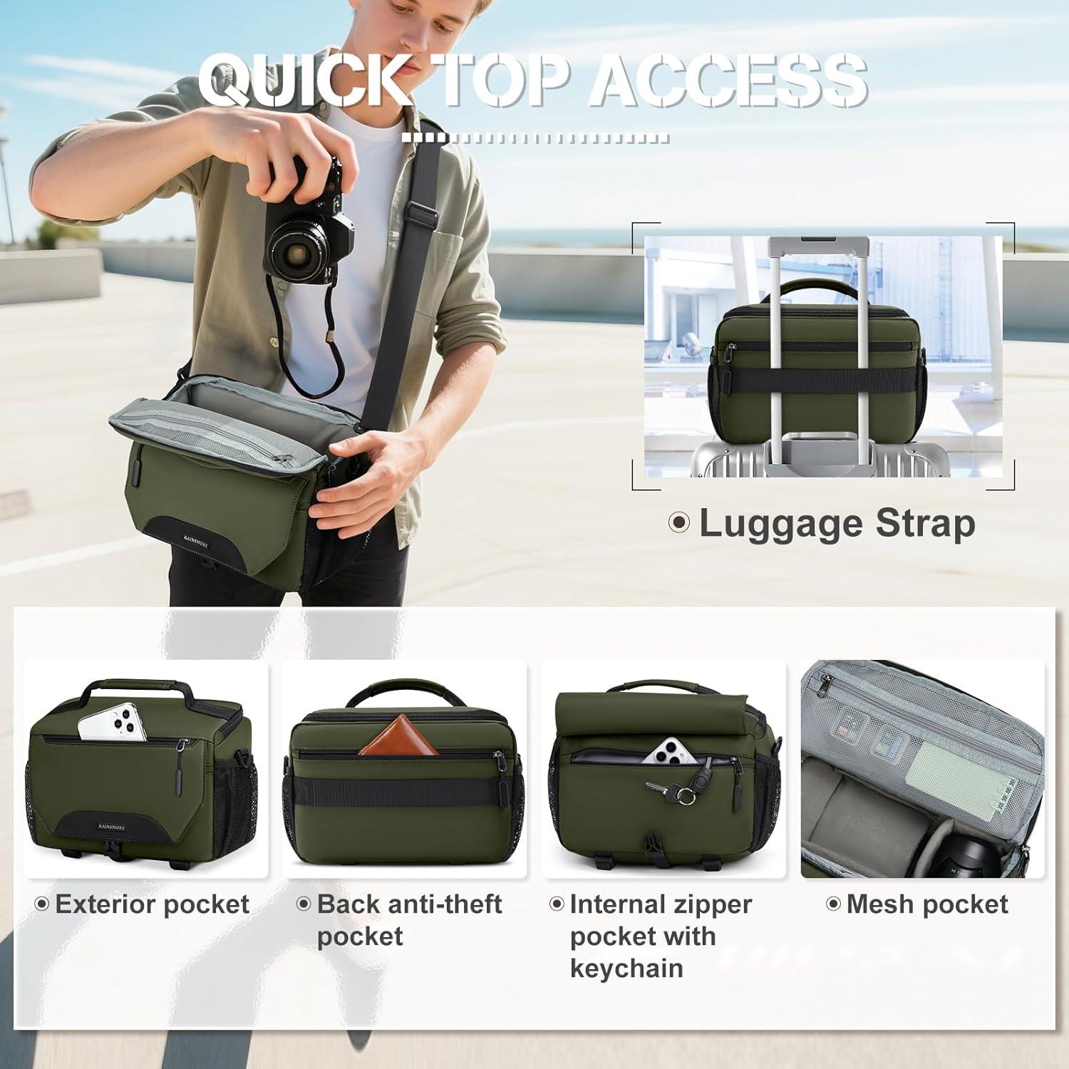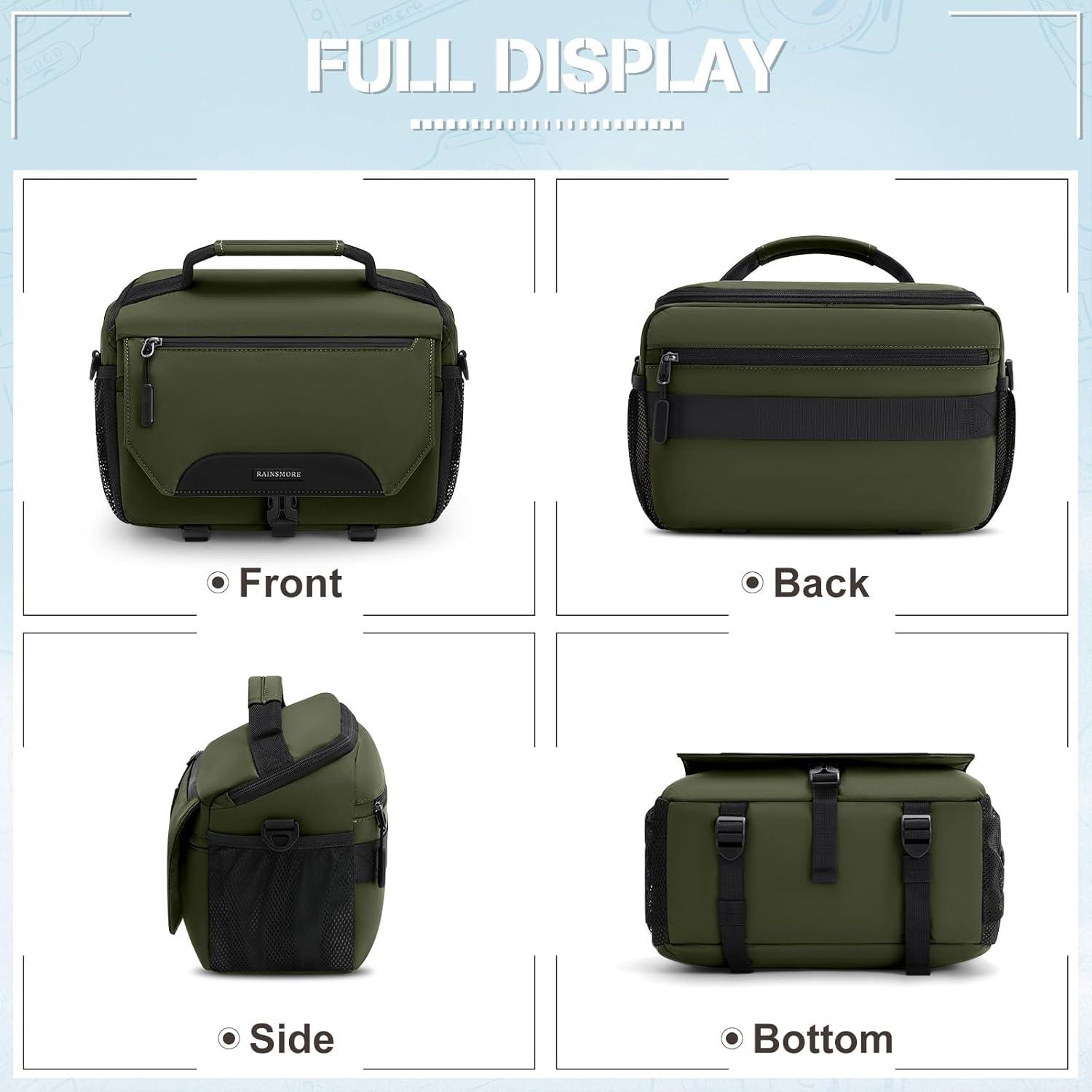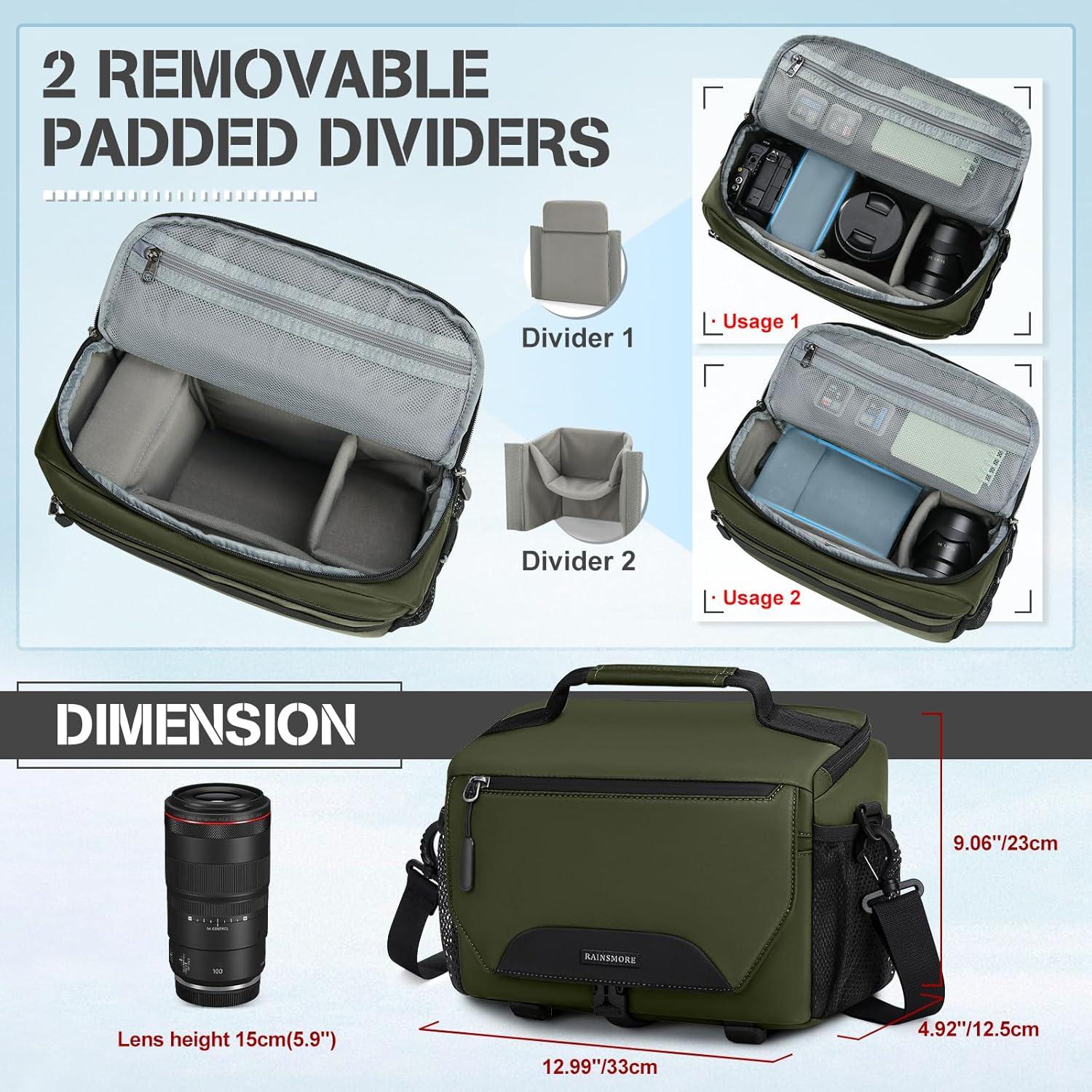 RAINSMORE Camera Bag, DSLR/SLR/Mirrorless Small Camera Sling Bag Waterproof Camera Case with Tripod Holder & Rain Cover Compact Crossbody Camera Bags for Photographers Everyday Shoulder Bags, Khaki(Green)