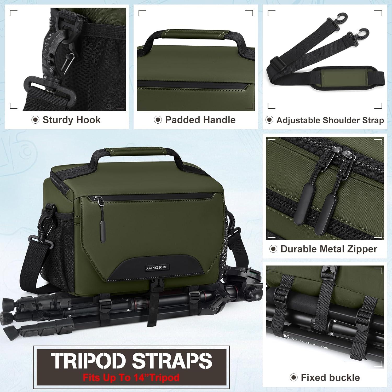 imageRAINSMORE Camera Bag DSLRSLRMirrorless Small Camera Sling Bag Waterproof Camera Case with Tripod Holder ampamp Rain Cover Compact Crossbody Camera Bags for Photographers Everyday Shoulder Bags KhakiGreen