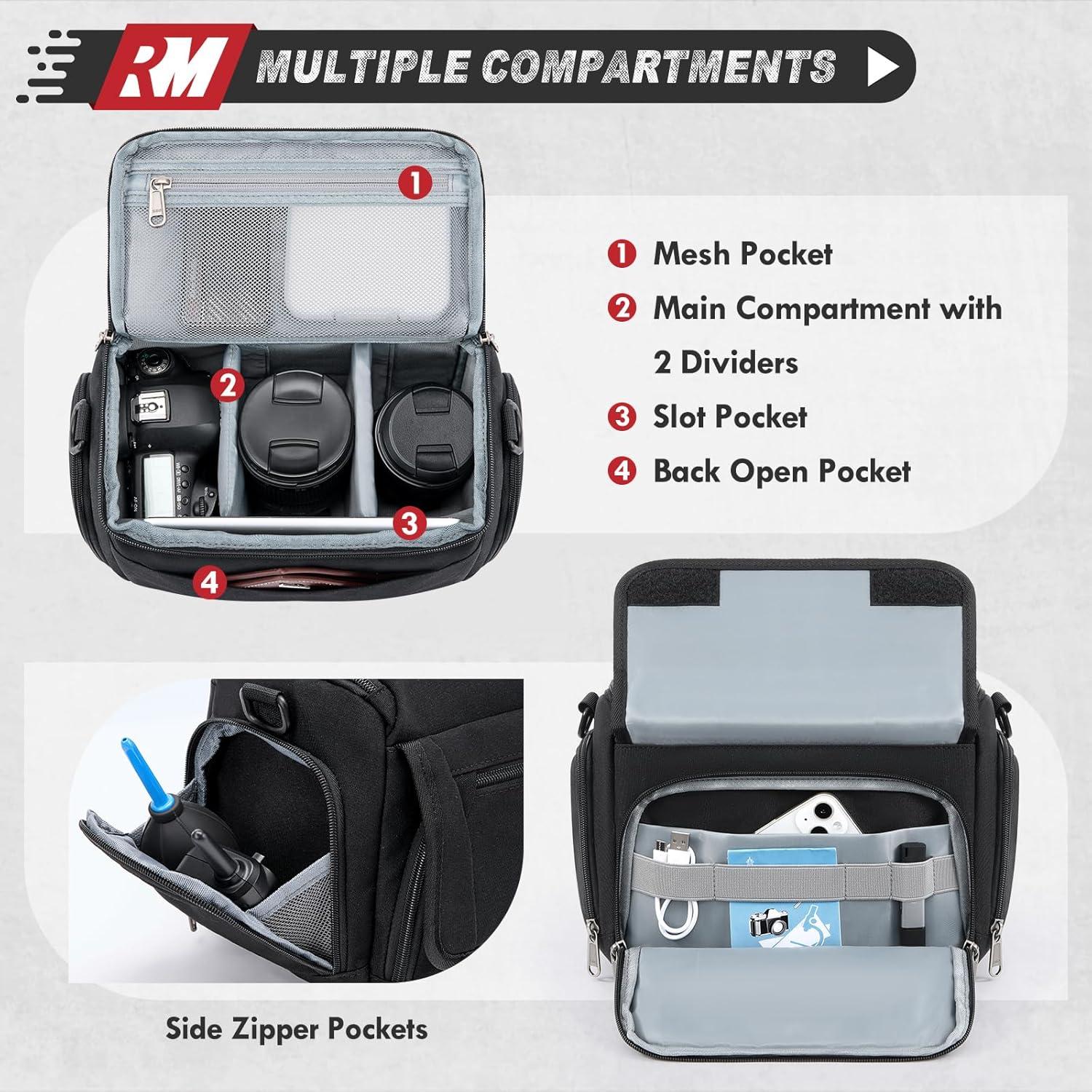 Multi-compartment Storage& Quick Access: Say goodbye to clutter! This camera bag features two removable dividers for easy and quick camera organization. Designed for photographers, camera bag crossbody main compartment can hold your DSLR camera and multiple lenses, while accessories such as tablets, power banks, and SD cards can be neatly organized in dedicated pockets. For easy access, camera cases has hidden pockets on the front and back for storing maps and valuables.