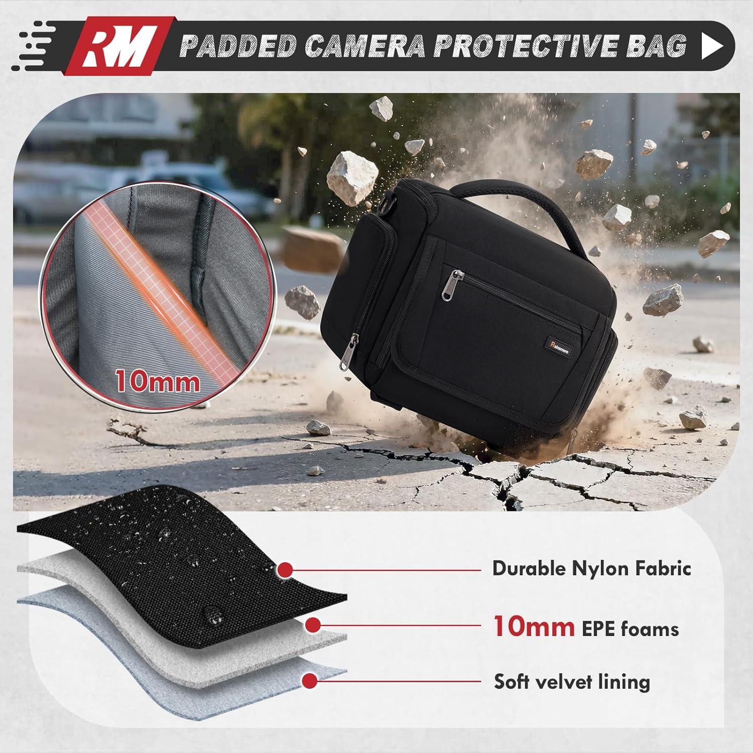 Meticulously Crafted& Perfect Gift: This camera carrying case is made of durable nylon fabric, lined with thick PE shock-absorbing foam and soft fleece, offering excellent water and dust resistance. The sturdy handle ensures comfortable carrying. Smooth and easy-to-use SBS and YKK zippers allow for easy access to your equipment. All stress points are reinforced with stitching for added durability. This digital camera bag is an ideal gift for friends, family, or photography enthusiasts.