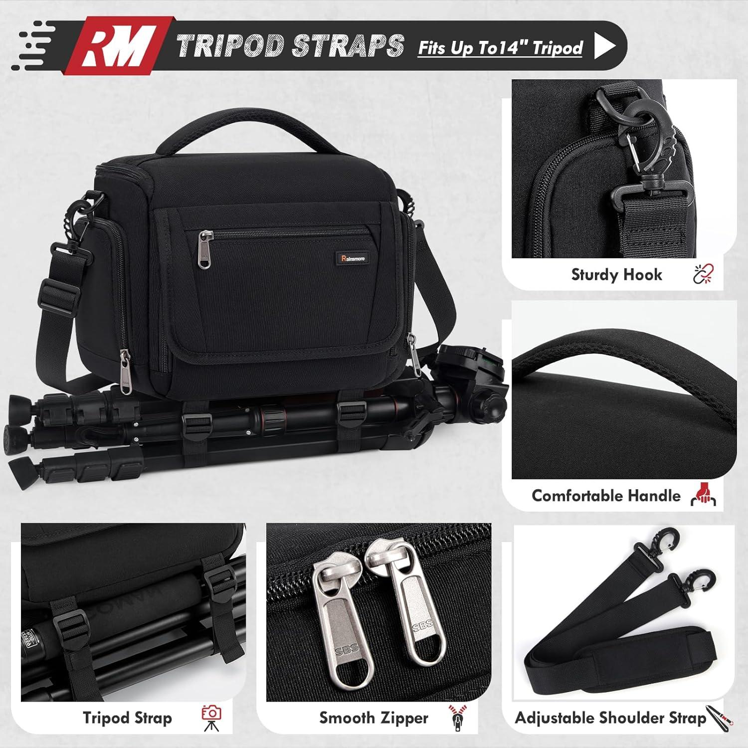 Practical Design& Versatile: Camera travel bag cleverly designed strap at the bottom allows for easy carrying of a small tripod or selfie stick. The adjustable shoulder strap ranges in length from 25.76 inches to 53.15 inches, allowing for customization to your preference. This DSLR camera bag easily transforms into an everyday casual bag (removing the dividers) as a crossbody bag, shoulder bag, messenger bag, crossbody bag, and tote bag. An ideal camera side bag for both men and women.