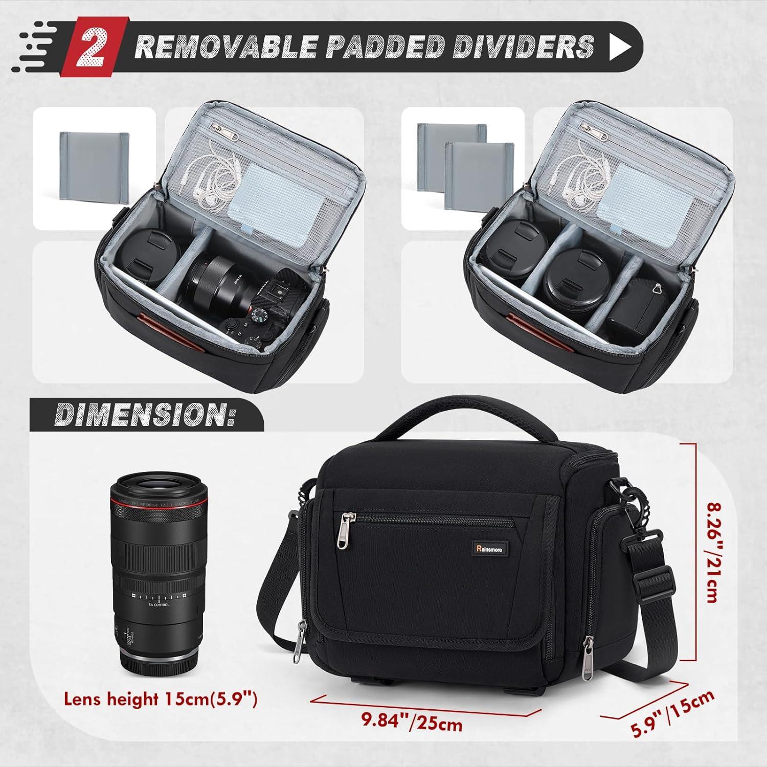 Perfect Fit & High Compatibility: This camera shoulder bag measures 9.8 inches (L) x 5.9 inches (W) x 8.26 inches (H) externally and 9.4 inches (L) x 5.5 inches (W) x 7.1 inches (H) internally. This camera bag is widely compatible with digital cameras, point-and-shoot SLR cameras, and mirrorless cameras from numerous brands including Nikon, Sony, Fujifilm, Canon, Olympus, Pentax, and Kodak. It is an ideal choice camera bags for photographers and camera enthusiasts.