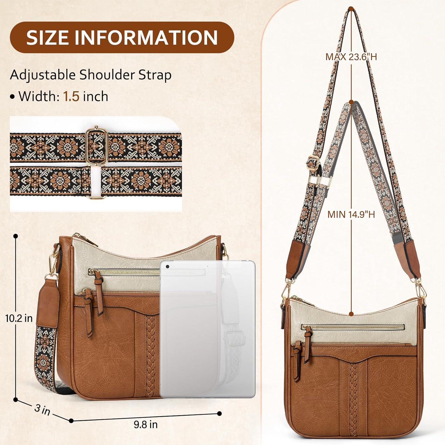 RAINSMORE Crossbody Bags for Women, 7 Pockets Crossbody Purses Lightweight Leather Shoulder Handbags for Travel(Beige and Brown)
