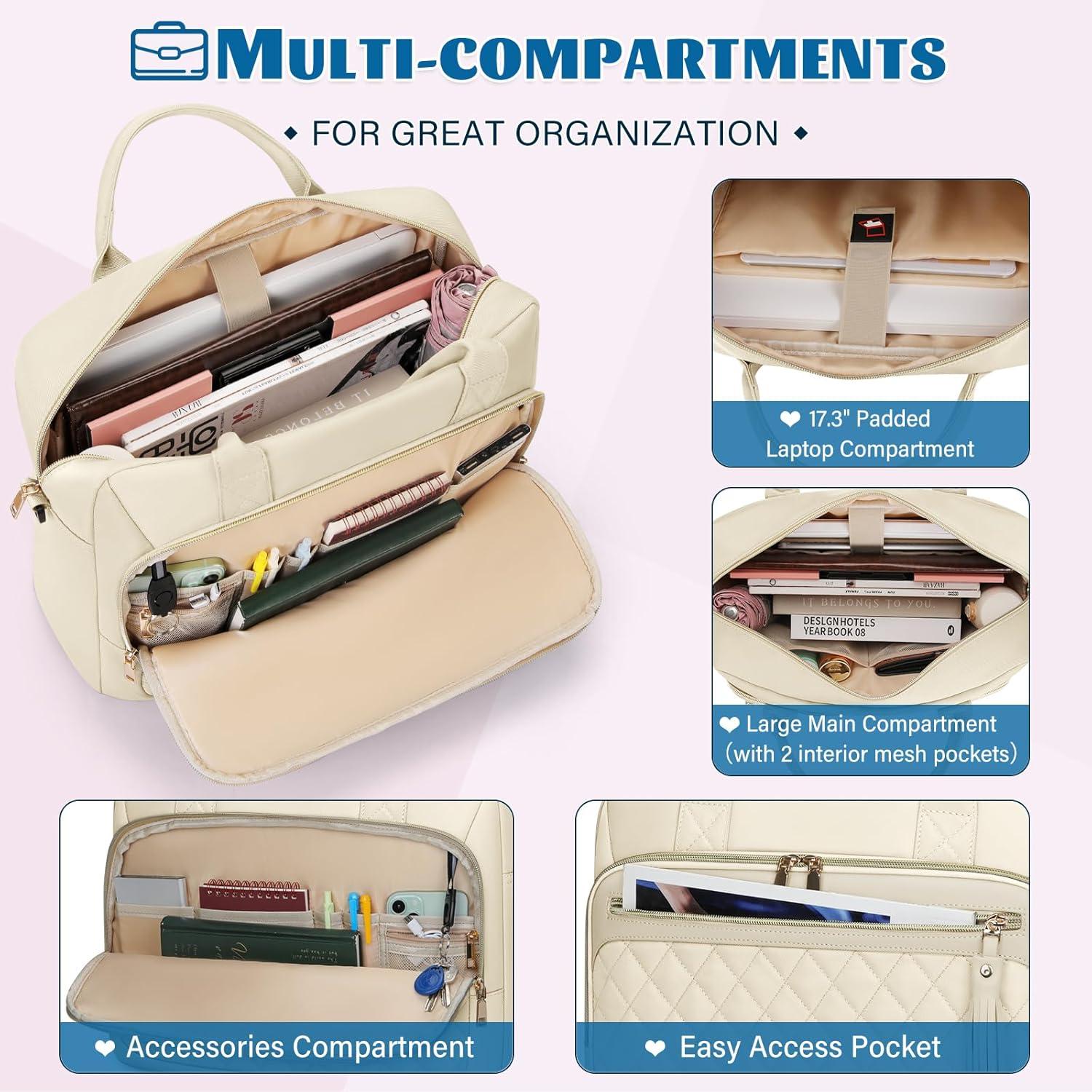imageRAINSMORE Laptop Bag 173 Inch Briefcase for Women Waterproof Computer Messenger Shoulder Bags Large Laptop Case for Work Business Office Travel College BlackBeige