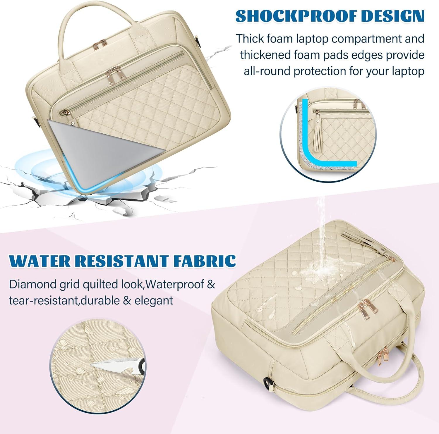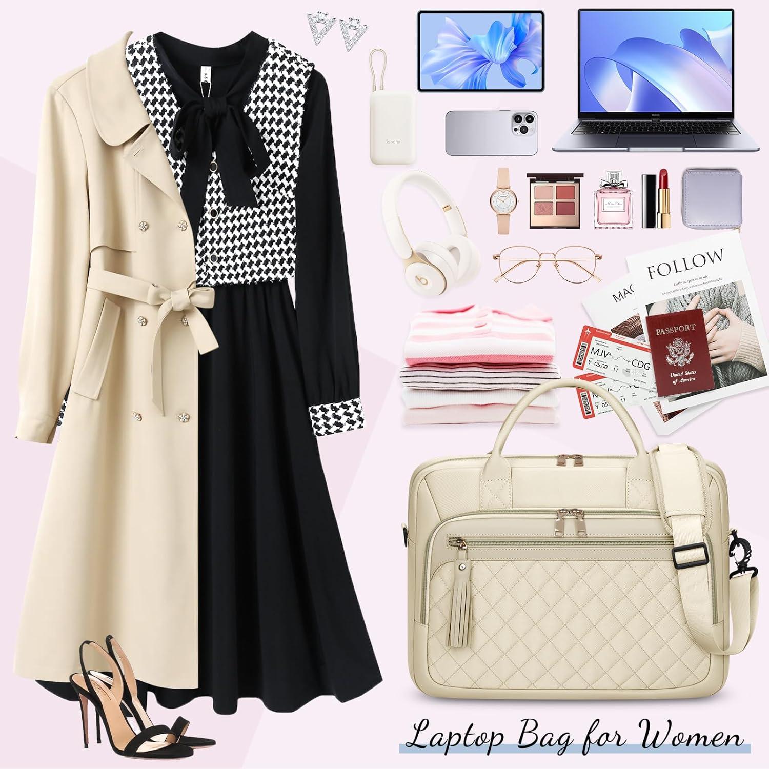 STYLISH AND PRACTICAL: This laptop briefcase for women is made of water-resistant polyester fabric with a fashionable stitching texture and is equipped with a sturdy and smooth gold-plated zipper, making this laptop bag stylish unique, gorgeous, and practical. This briefcase is suitable for any occasion—commuting, work, travel, college, and business. A great gift for women, mothers, friends, family, and partners on Valentine's Day, Mother's Day, Thanksgiving, Christmas, and Anniversary Birthday