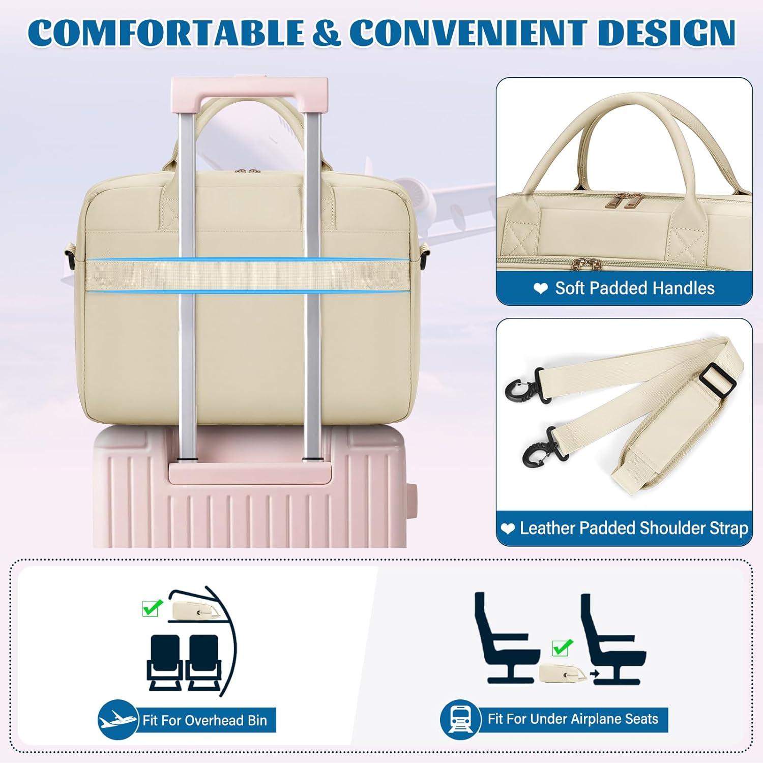 EASY TO CARRY: The laptop bag for women comes with a detachable, adjustable padded leather shoulder strap, making it comfortable to carry and less likely to slip off, it can be used as a shoulder bag, messenger bag, and crossbody bag. Sturdy padded handles of work briefcase for long-time comfortable carrying.The laptop briefcase with a trolley strap on the back that allows you to fasten your laptop bag to the drawbar in your suitcase, making business travel easier and more convenient.