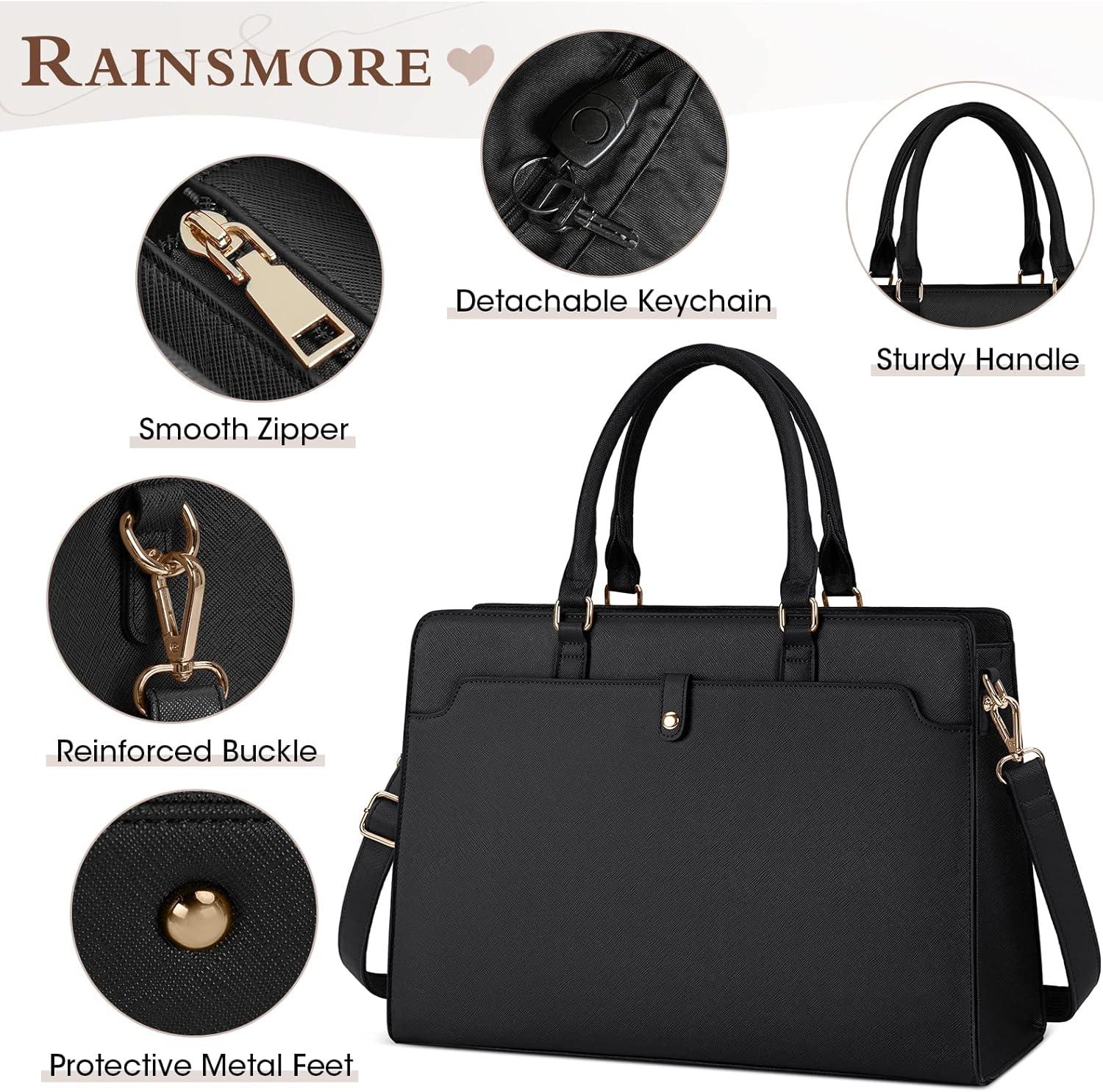 imageRAINSMORE Laptop Bag for Women 156 Inch Laptop Tote Bag Leather Work Bag Waterproof Womens Briefcase Business Office Computer Tote Bag Large Capacity Handbag Shoulder Bag BlackBlack