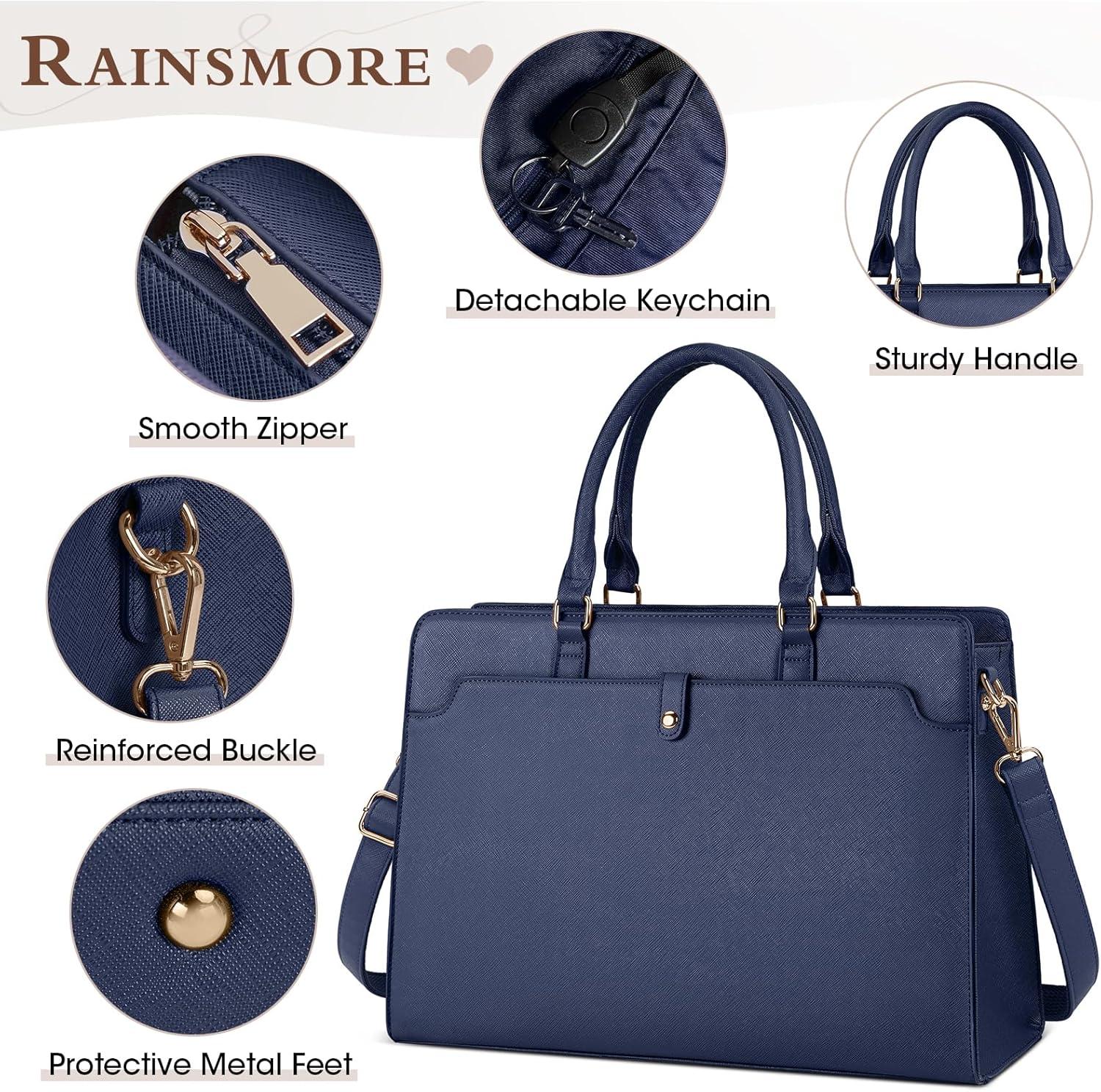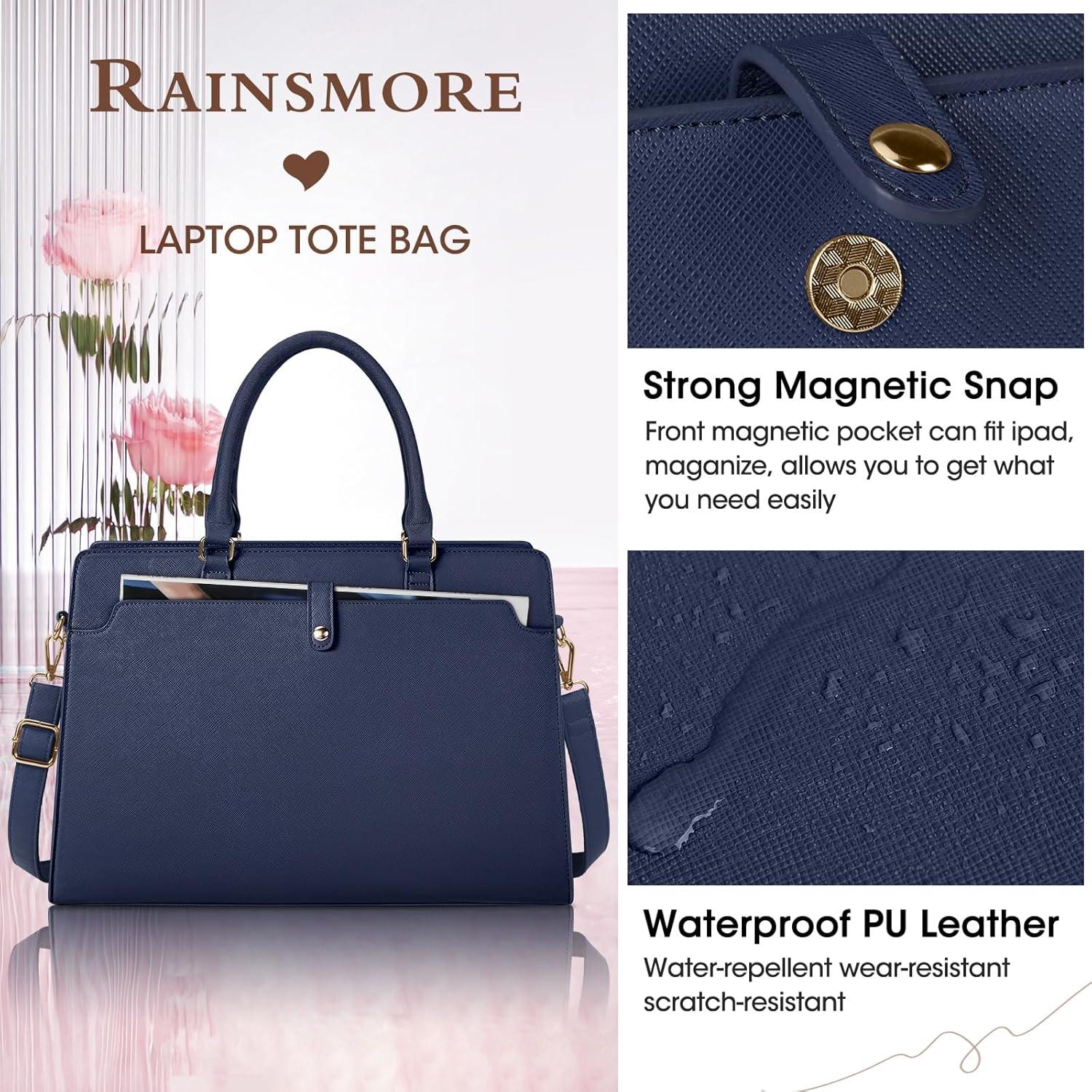 imageRAINSMORE Laptop Bag for Women 156 Inch Laptop Tote Bag Leather Work Bag Waterproof Womens Briefcase Business Office Computer Tote Bag Large Capacity Handbag Shoulder Bag BlackBlue
