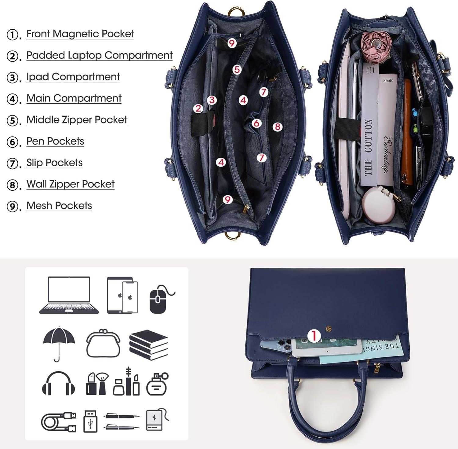 Versatile Tote Bag: Professional work bags for women comes with comfortable handle and detachable & adjustable shoulder strap, can be carried in different ways. Practical computer bag can be used as as a handbag, laptop bag, teacher tote bag, ladies briefcase, college school shoulder bag and business office work bag.