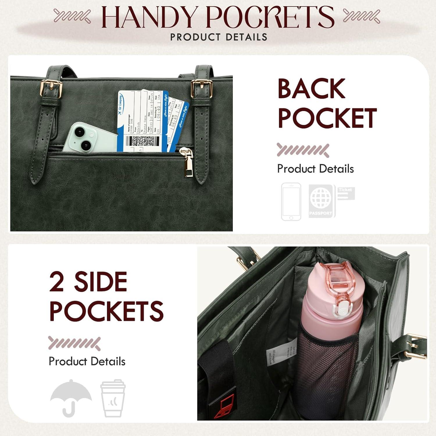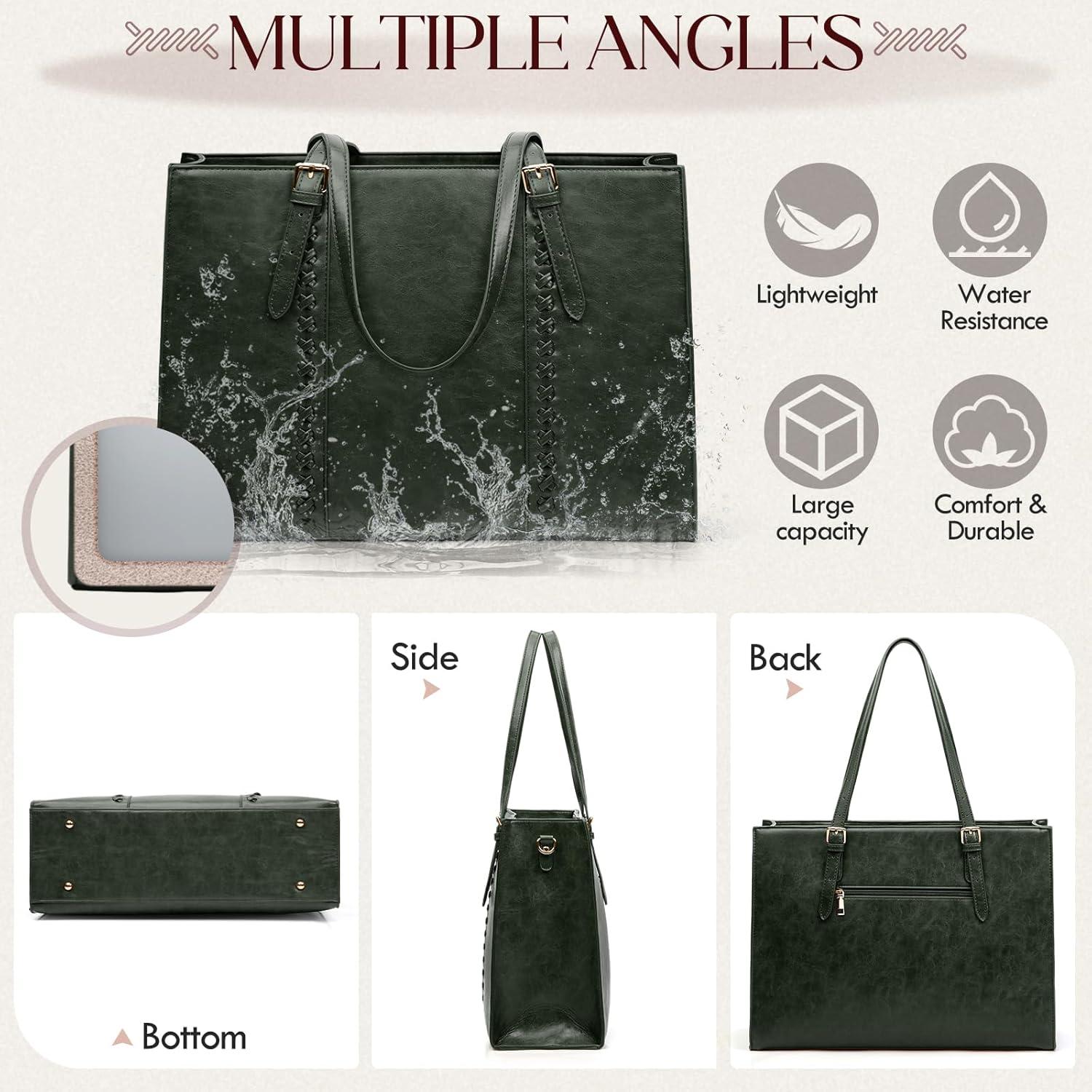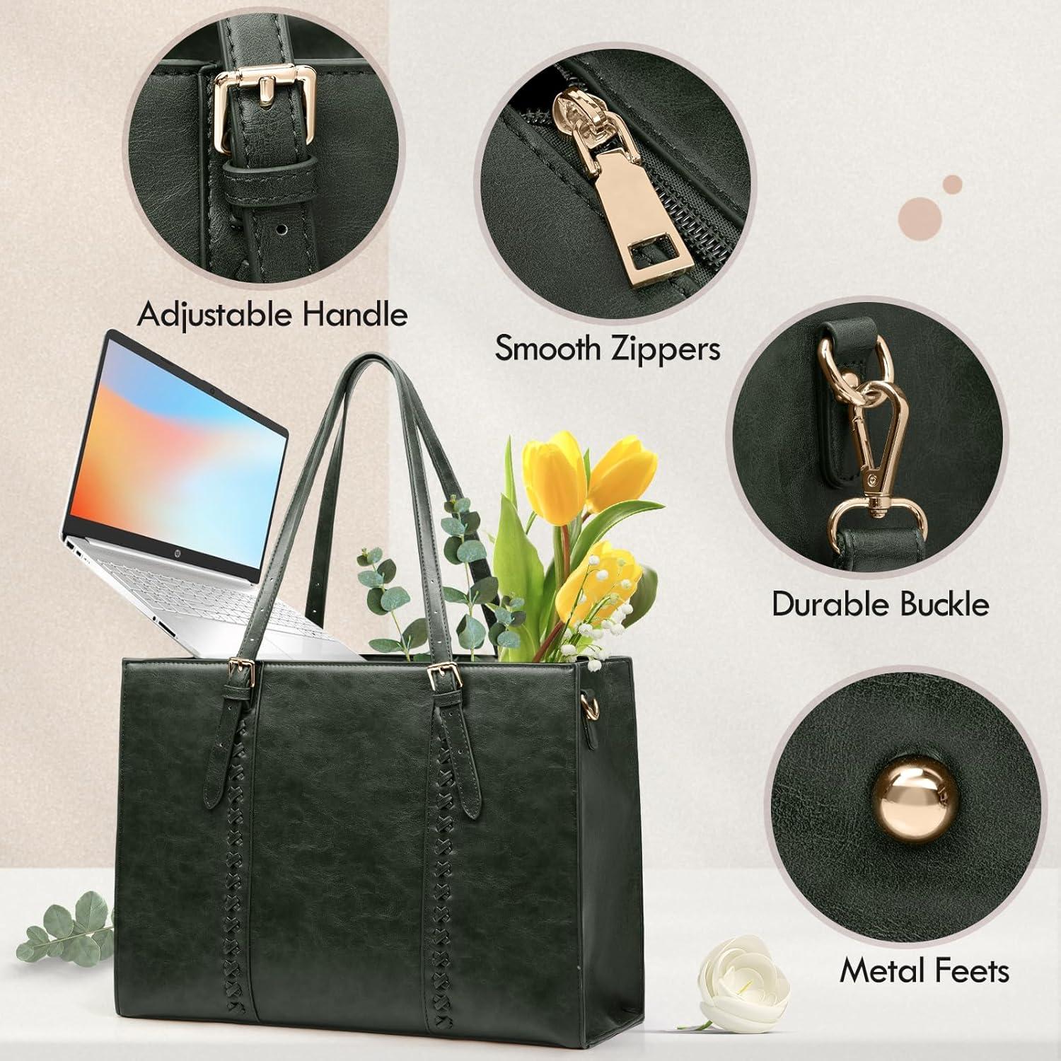VERSATILE LAPTOP BAG FOR WOMEN:With adjustable handles and a removable long shoulder strap, you can transform it into different carrying methods according to your needs and venue, such as changing into a women's briefcase, teacher tote bag, computer shoulder handbag, or crossbody work bag that is suitable for office, college, shopping, parties, travel, and various occasions. It‘s also a perfect choice for anniversaries, birthdays, Mother’s Day, Valentine’s Day, and Christmas.