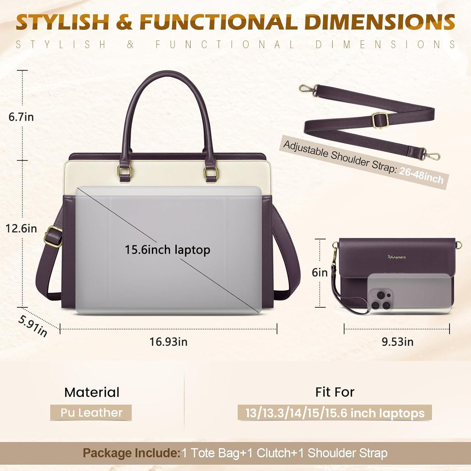 Travel-Ready Dimensions: Laptop purse size: 16.93″L x12.6″H x5.91″W – spacious yet easy to carry. Fits 13/13.3/14/15/15.6 inch laptops. Compact clutch purse (9.53″x6″) holds cards, cash and lipstick. Adjust the strap from shoulder to cross-body length for airport dashes or crowded commutes. The lightweight design won't weigh you down, even when packed full.