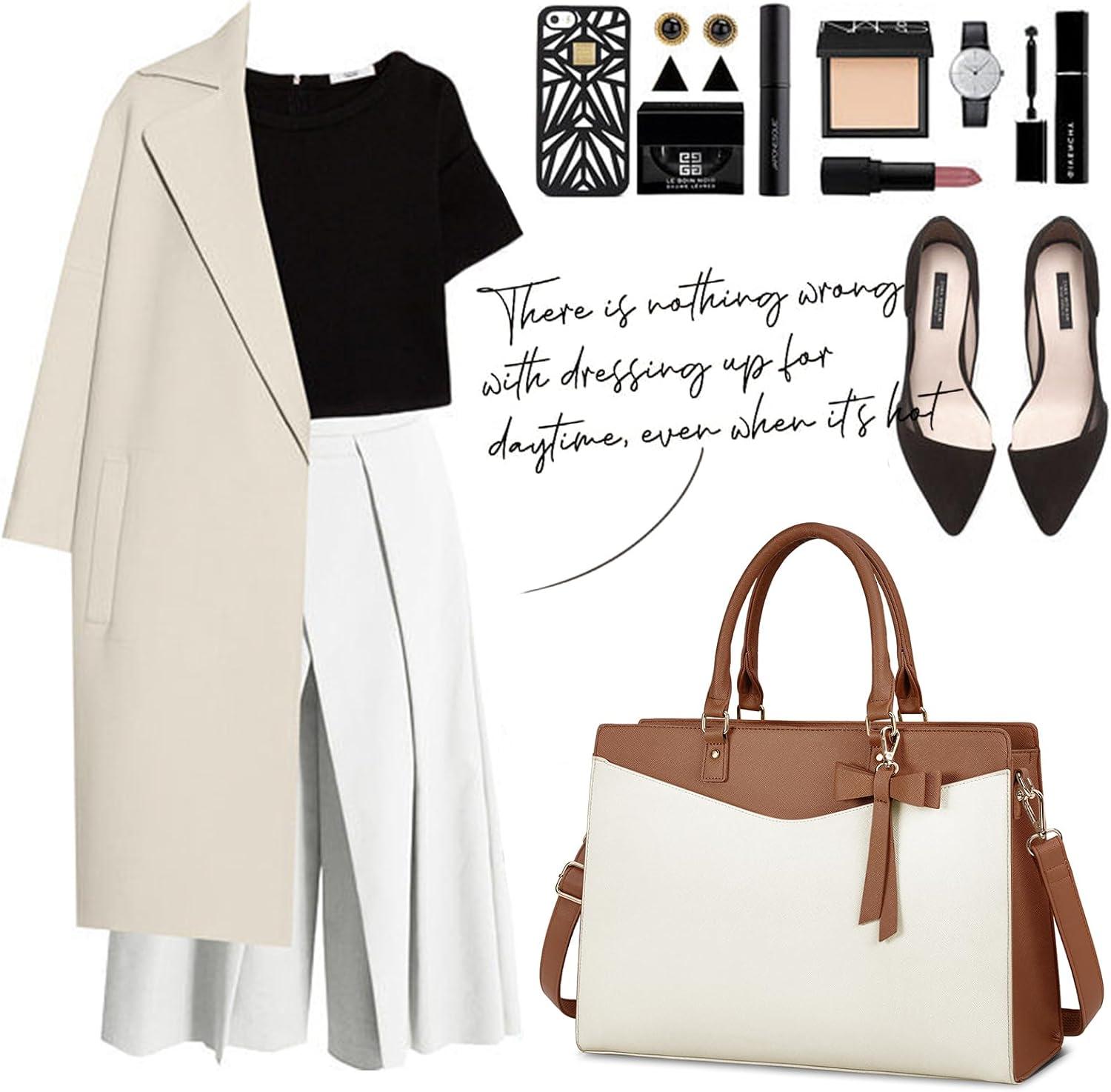 Waterproof Material & Durability: Made of high-quality cross pattern PU leather and high-density nylon lining, this laptop bag for women is water-resistant, scratch-resistant, wear-resistant and anti-wrinkle, so it can be also cleaned easily. Reinforced flat bottom features four metal feet to protect against scratching; Plus, other details that is smooth zipper, sturdy metal accessories and the reinforced stitching at each stress point give this women's laptop bag an upgrade in durability