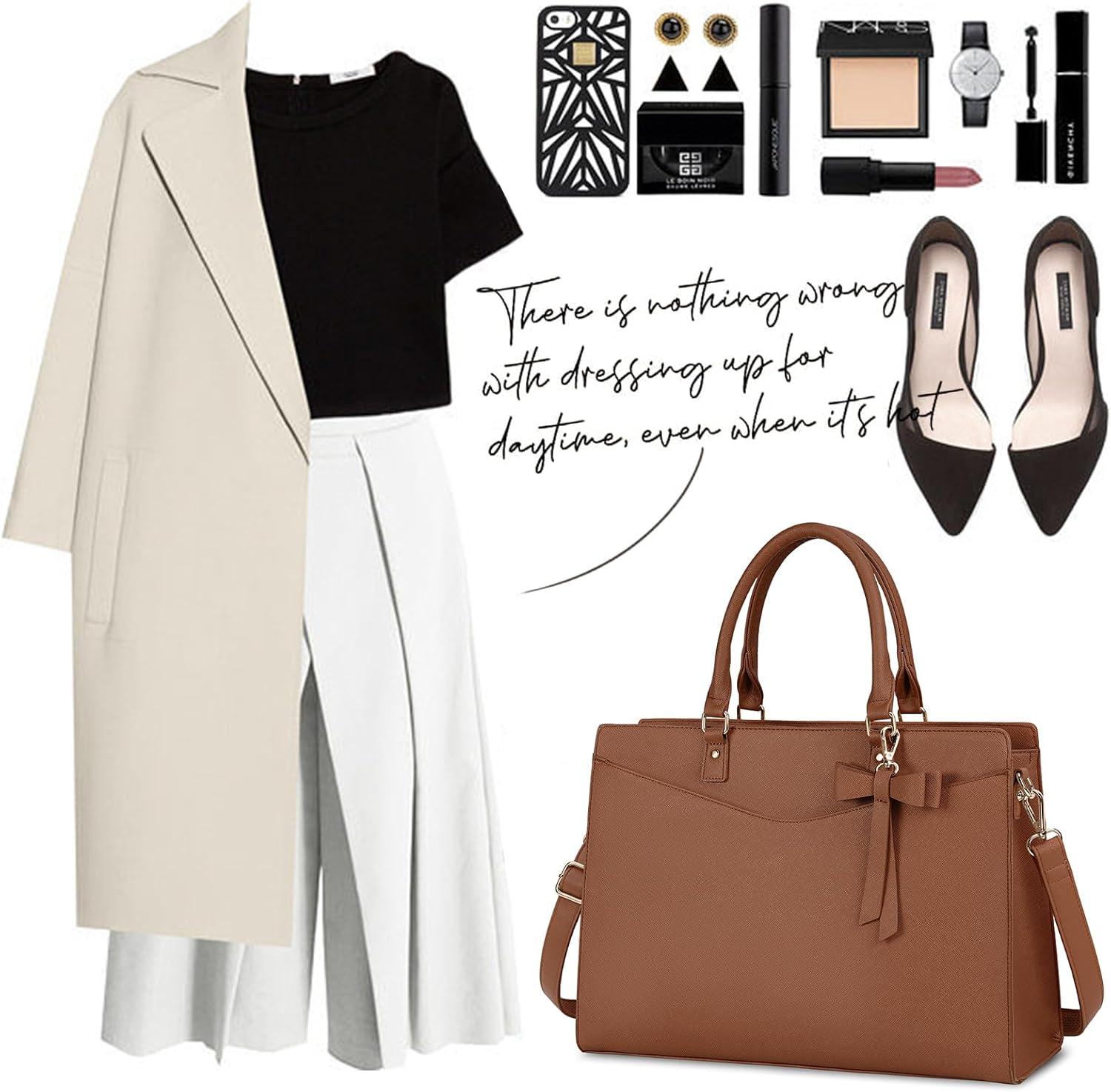 Waterproof Material & Durability: Made of high-quality cross pattern PU leather and high-density nylon lining, this laptop bag for women is water-resistant, scratch-resistant, wear-resistant and anti-wrinkle, so it can be also cleaned easily. Reinforced flat bottom features four metal feet to protect against scratching; Plus, other details that is smooth zipper, sturdy metal accessories and the reinforced stitching at each stress point give this women's laptop bag an upgrade in durability