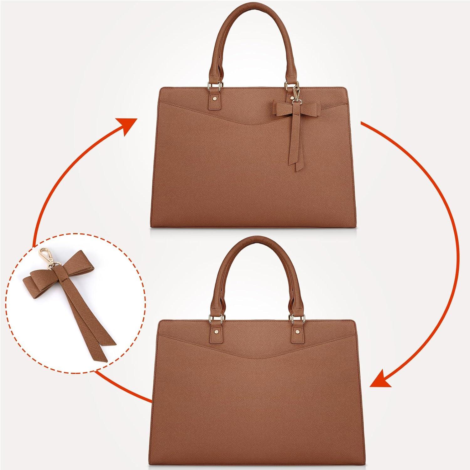Elegant Laptop Tote: RAINSMORE Work bags for women come with a detachable premium bow, adds an extra feminine touch to this minimalist laptop tote bag for women. To tie or not to tie, both which personalize your styles and retain a sense of chic. Perfect gift choices for anniversary, birthday, Mother's Day, Valentine's Day and Christmas. Tips: this laptop bag for women has been patented on its appearance