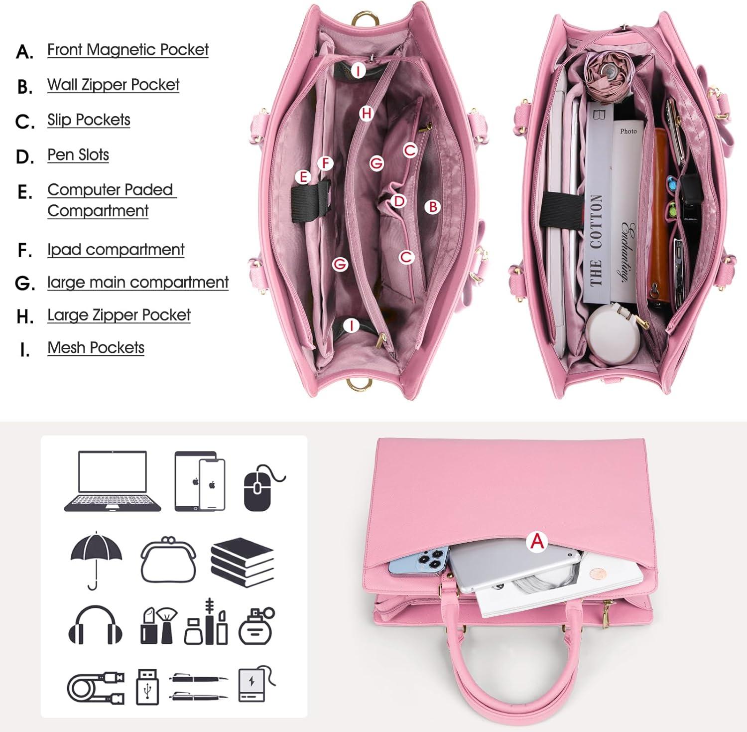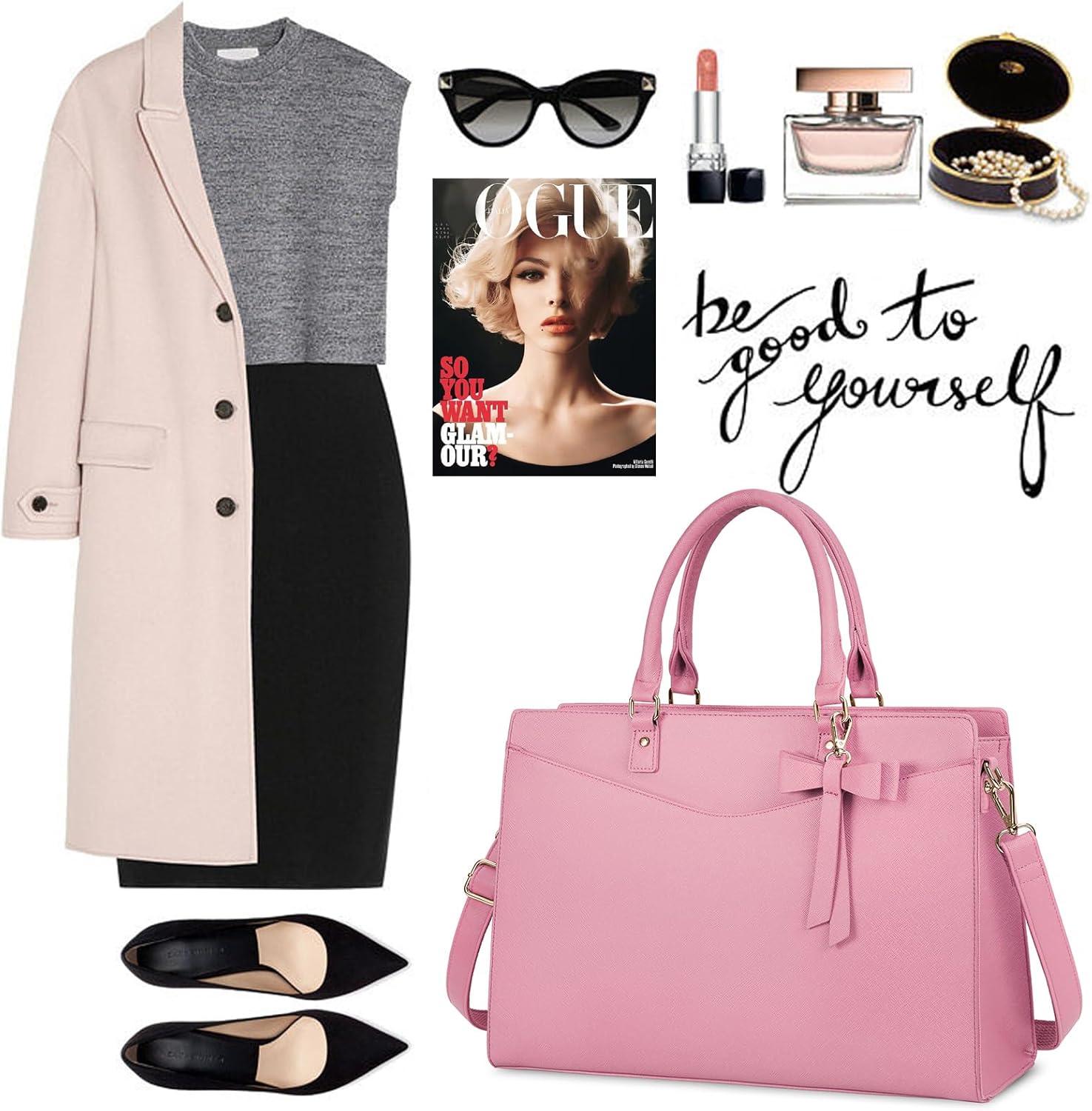 Waterproof Material & Durability: Made of high-quality cross pattern PU leather and high-density nylon lining, this laptop bag for women is water-resistant, scratch-resistant, wear-resistant and anti-wrinkle, so it can be also cleaned easily. Reinforced flat bottom features four metal feet to protect against scratching; Plus, other details that is smooth zipper, sturdy metal accessories and the reinforced stitching at each stress point give this women's laptop bag an upgrade in durability
