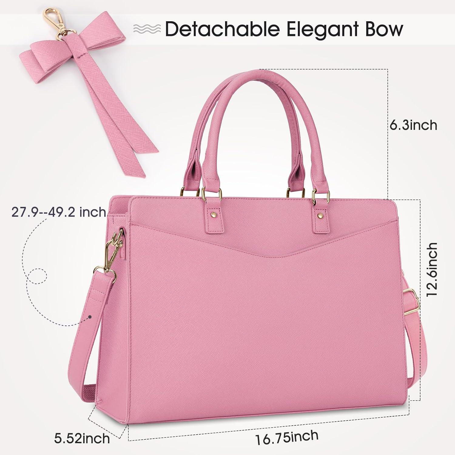 Elegant Laptop Tote: RAINSMORE Work bags for women come with a detachable premium bow, adds an extra feminine touch to this minimalist laptop tote bag for women. To tie or not to tie, both which personalize your styles and retain a sense of chic. Perfect gift choices for anniversary, birthday, Mother's Day, Valentine's Day and Christmas. Tips: this laptop bag for women has been patented on its appearance