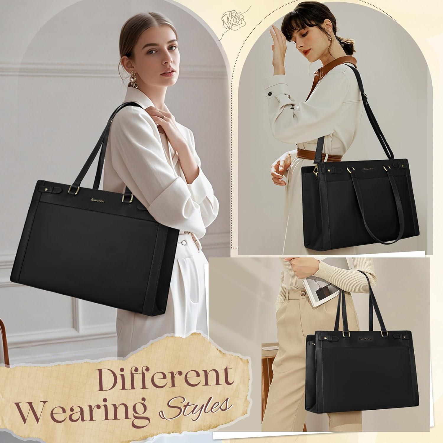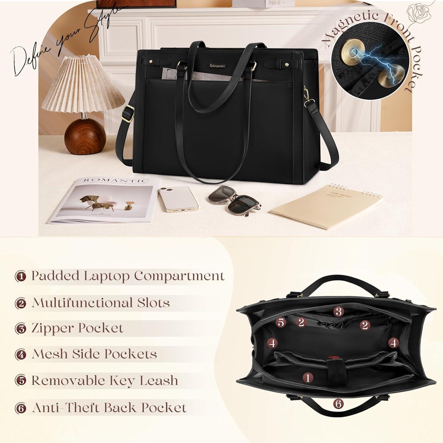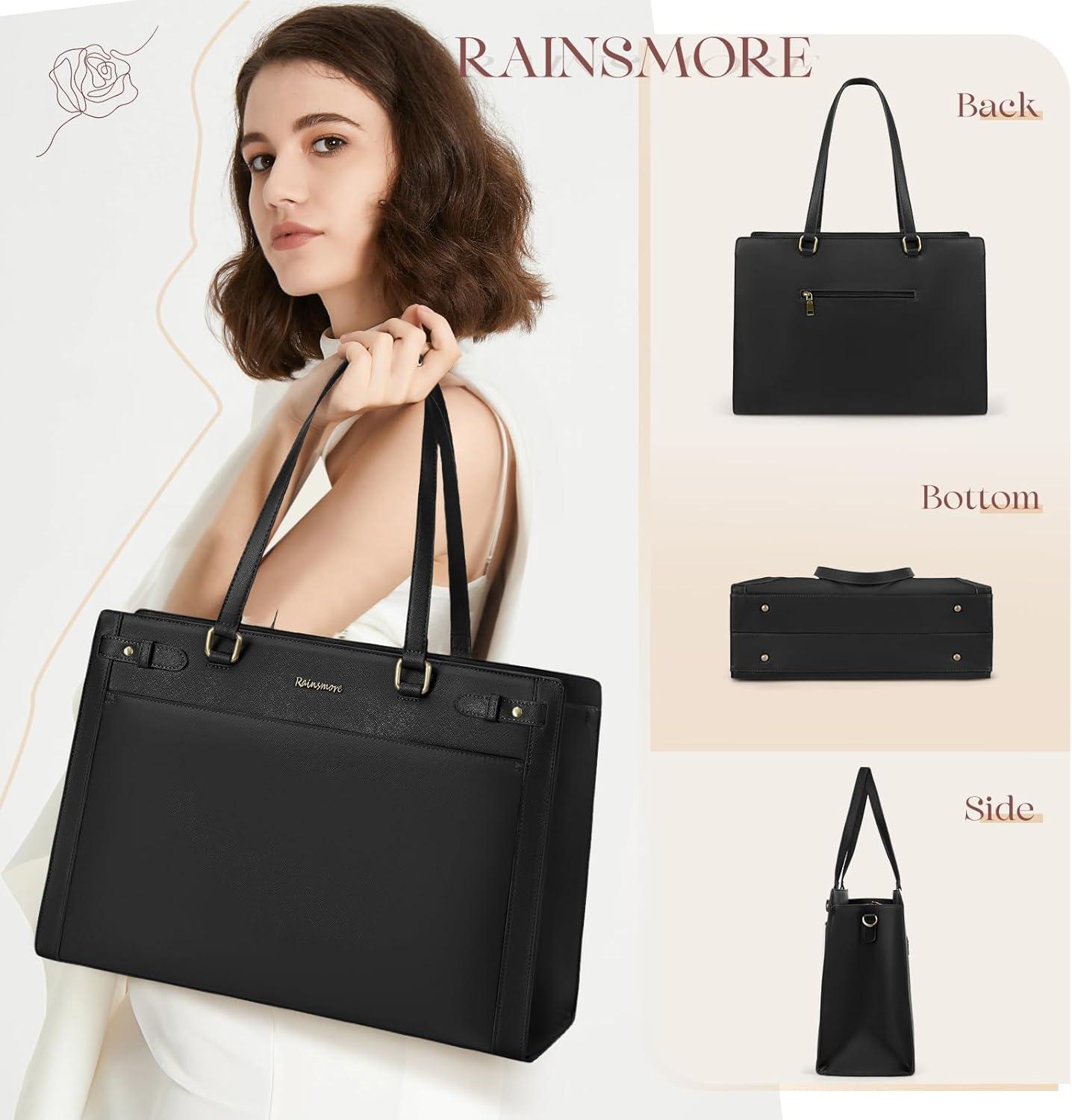 Elegantly Feminine Design for Gifting & Self-Treats: Elevate your professional aesthetic with exquisite RAINSMORE plate in antique gold tones, adding subtle sophistication to minimalist design. The versatile palette of this leather briefcase complements business attire, dresses, and casual jeans alike, builds to outlast trends and turbulence. RAINSMORE work tote bags for women are the luxury-feel present for moms, wives or graduates seeking style-meets-function workwear