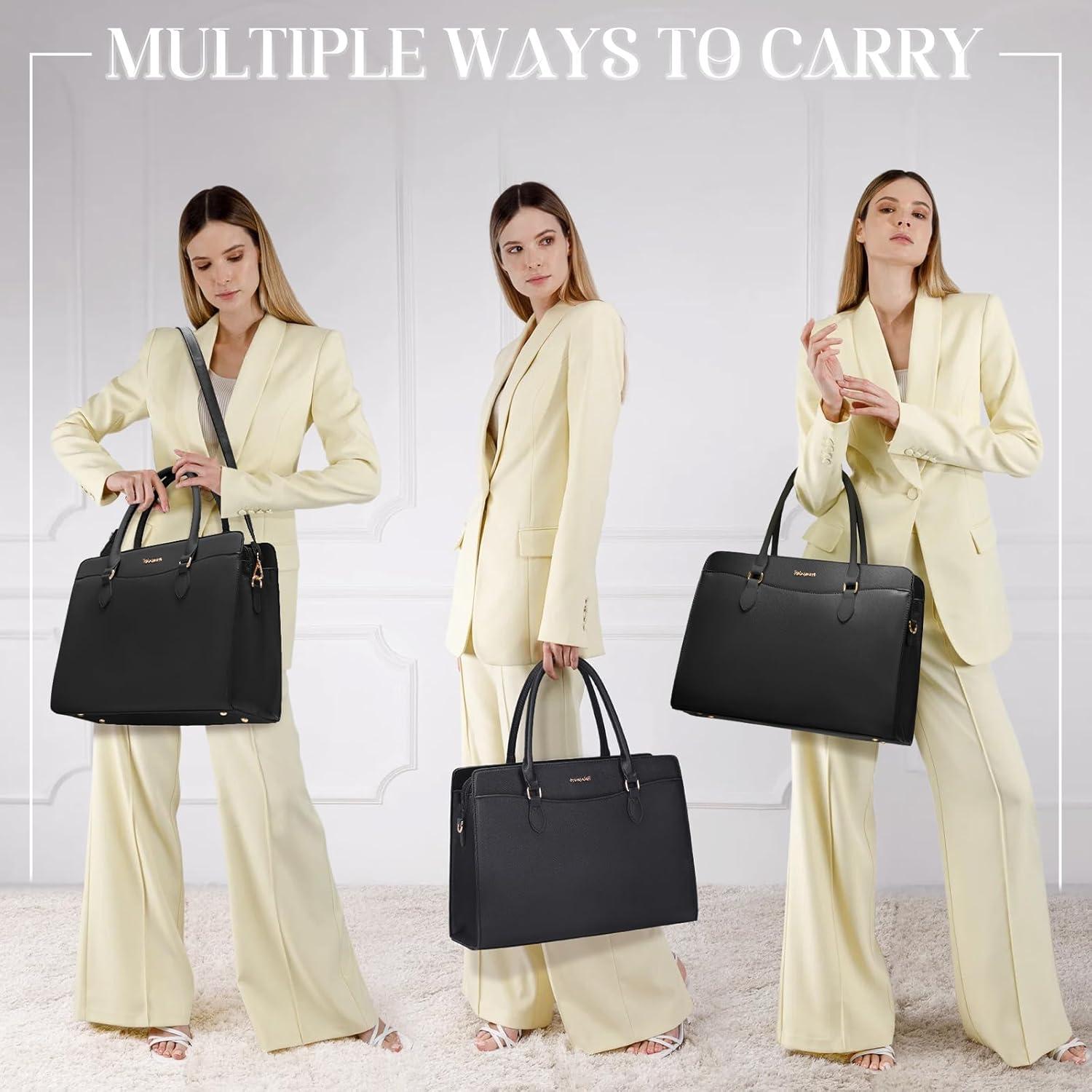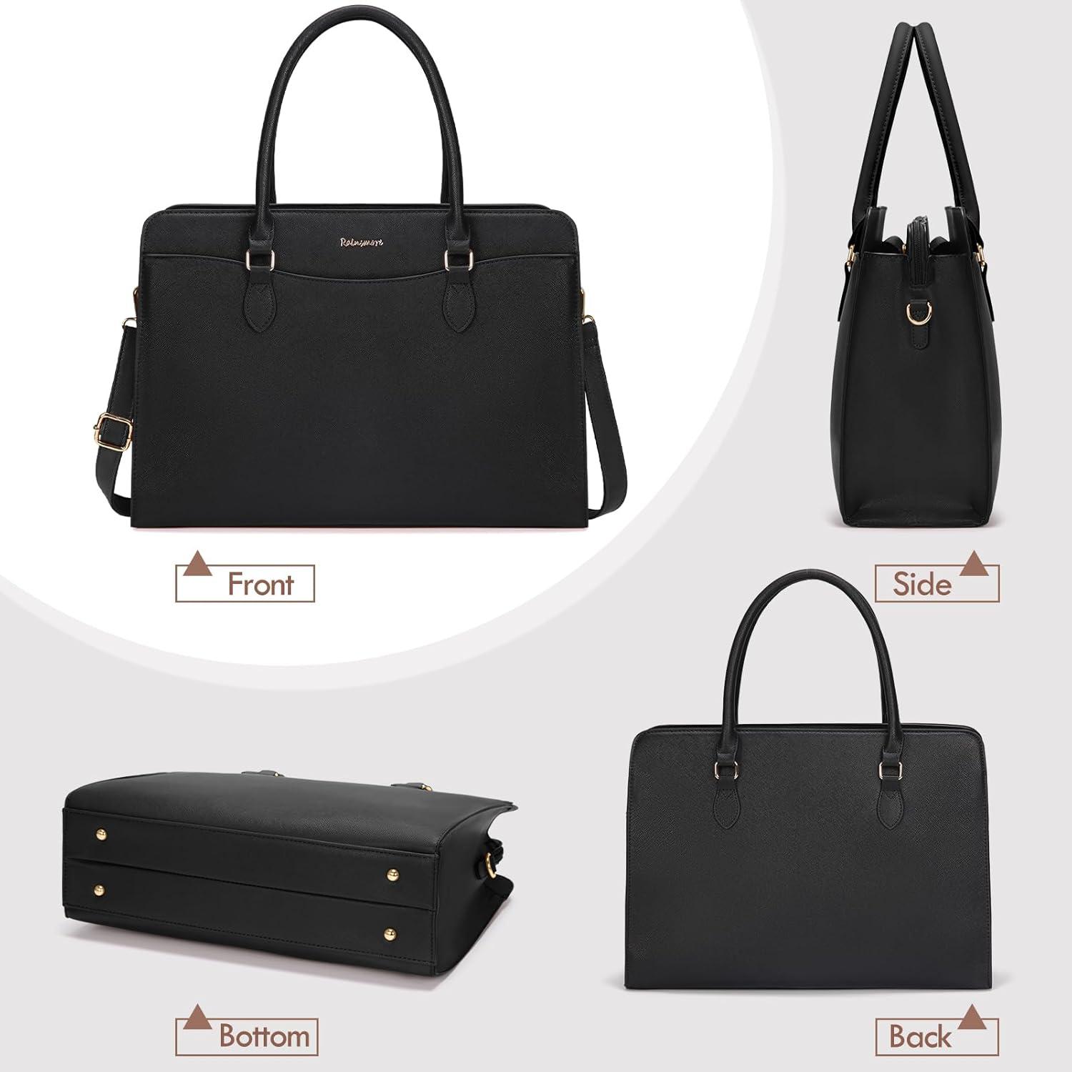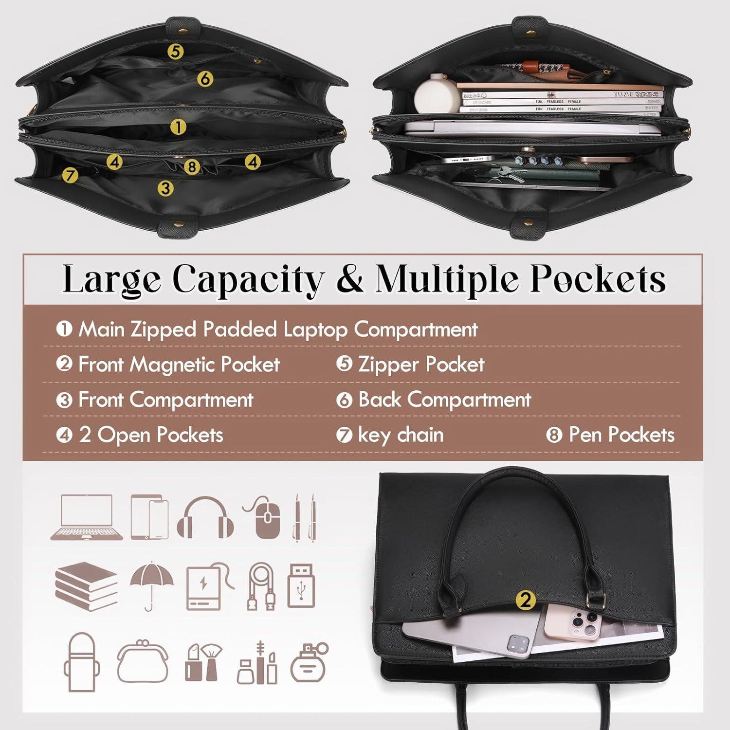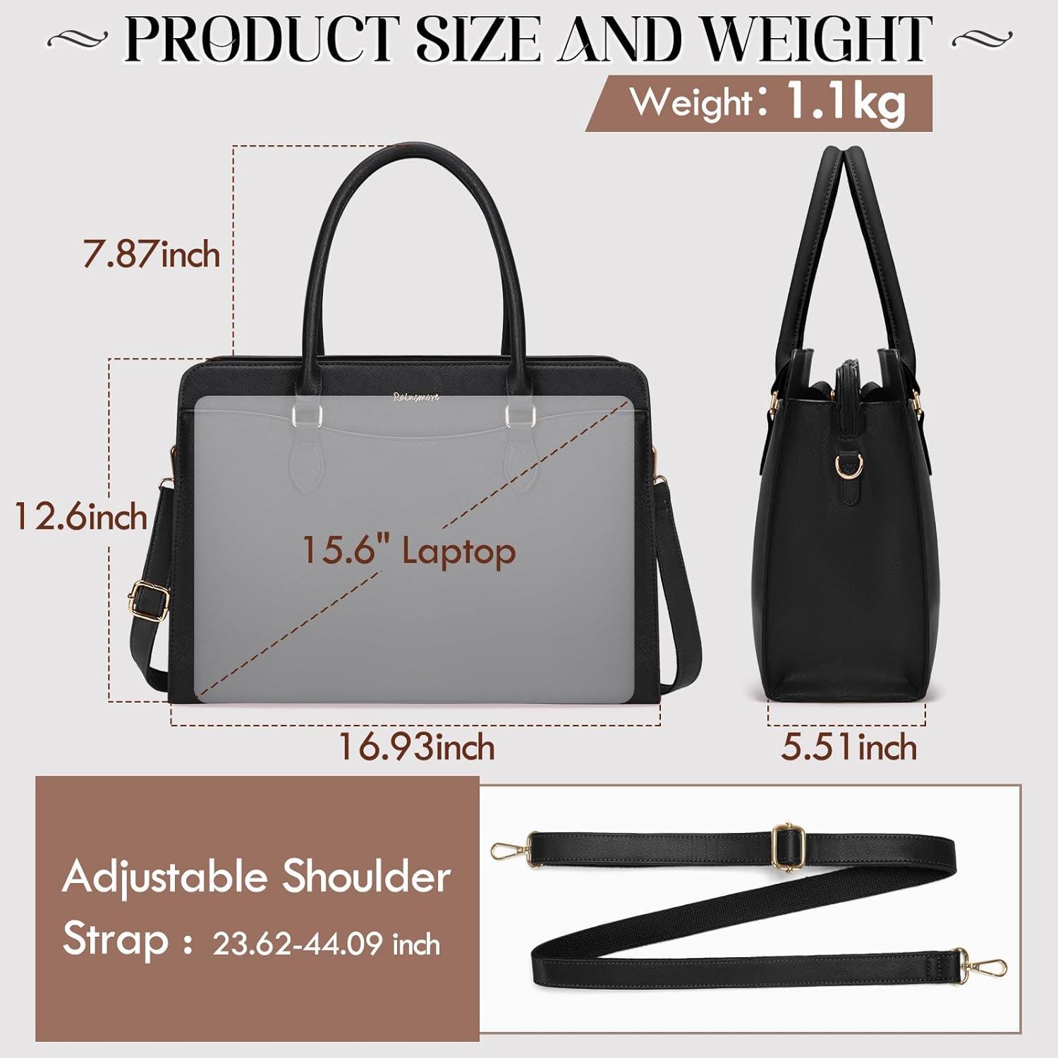 Spacious & Multiple Pockets – Dimensions of the womens laptop bag: 16.92(L)* 5.51(W)* 12.59(H) inch. Equipped with 1 front magnetic clasp pocket for passports, cosmetics, wallet, etc. There are 2 spacious magnetic clasp compartments, including 2 slip pockets, 4 pen slots, 1 key chain, and 1 zipper pocket, which not only accommodates all your items, such as A4 documents, pens, books, etc. but also keeps the laptop bag organized. Reasonable partition, say goodbye to clutter.