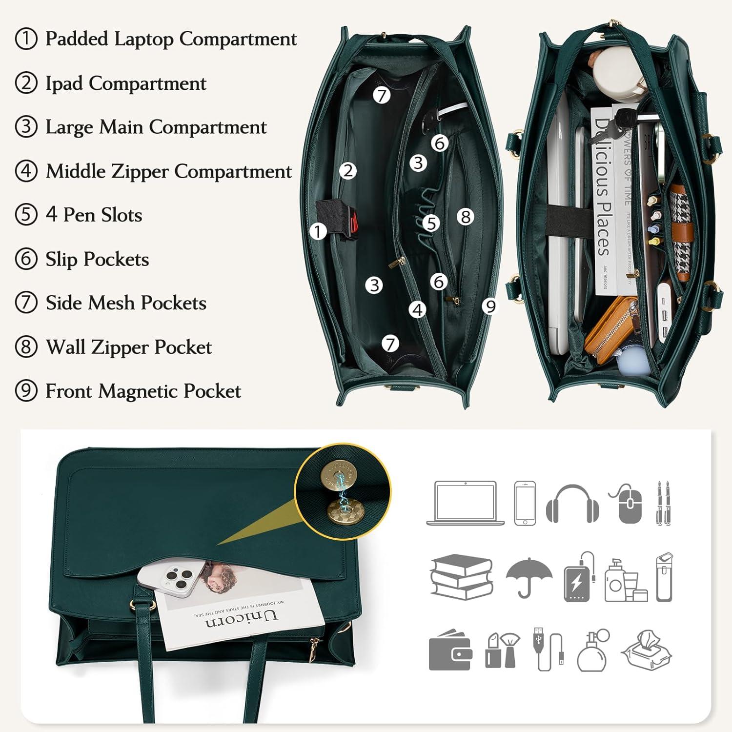 VERSATILE AND PRACTICAL: With stylish and functional design, this laptop bag for women is an ideal choice for professional women, college students, teachers, and more, whether you're heading to the office, going on a business trip or attending meetings . It is a practical laptop tote, teacher bag, work bag or office briefcase. An excellent gift choice for your mom, wife, daughter or friends