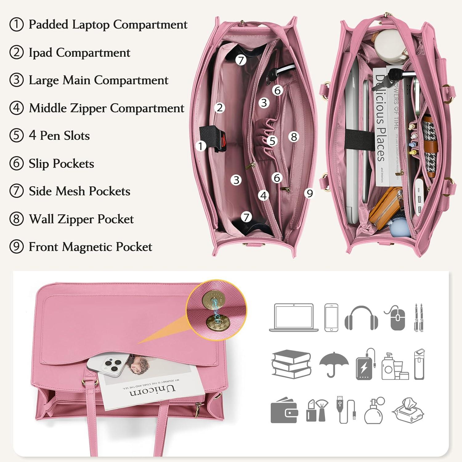 VERSATILE AND PRACTICAL: With stylish and functional design, this laptop bag for women is an ideal choice for professional women, college students, teachers, and more, whether you're heading to the office, going on a business trip or attending meetings . It is a practical laptop tote, teacher bag, work bag or office briefcase. An excellent gift choice for your mom, wife, daughter or friends