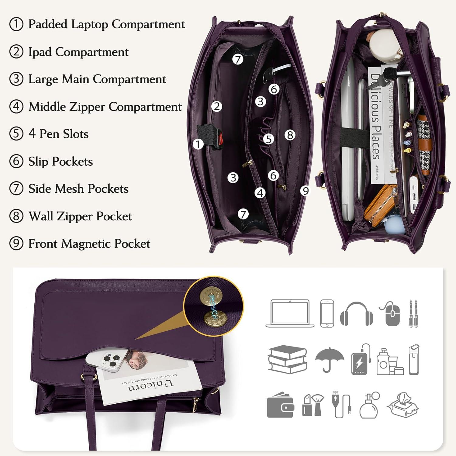 VERSATILE AND PRACTICAL: With stylish and functional design, this laptop bag for women is an ideal choice for professional women, college students, teachers, and more, whether you're heading to the office, going on a business trip or attending meetings . It is a practical laptop tote, teacher bag, work bag or office briefcase. An excellent gift choice for your mom, wife, daughter or friends