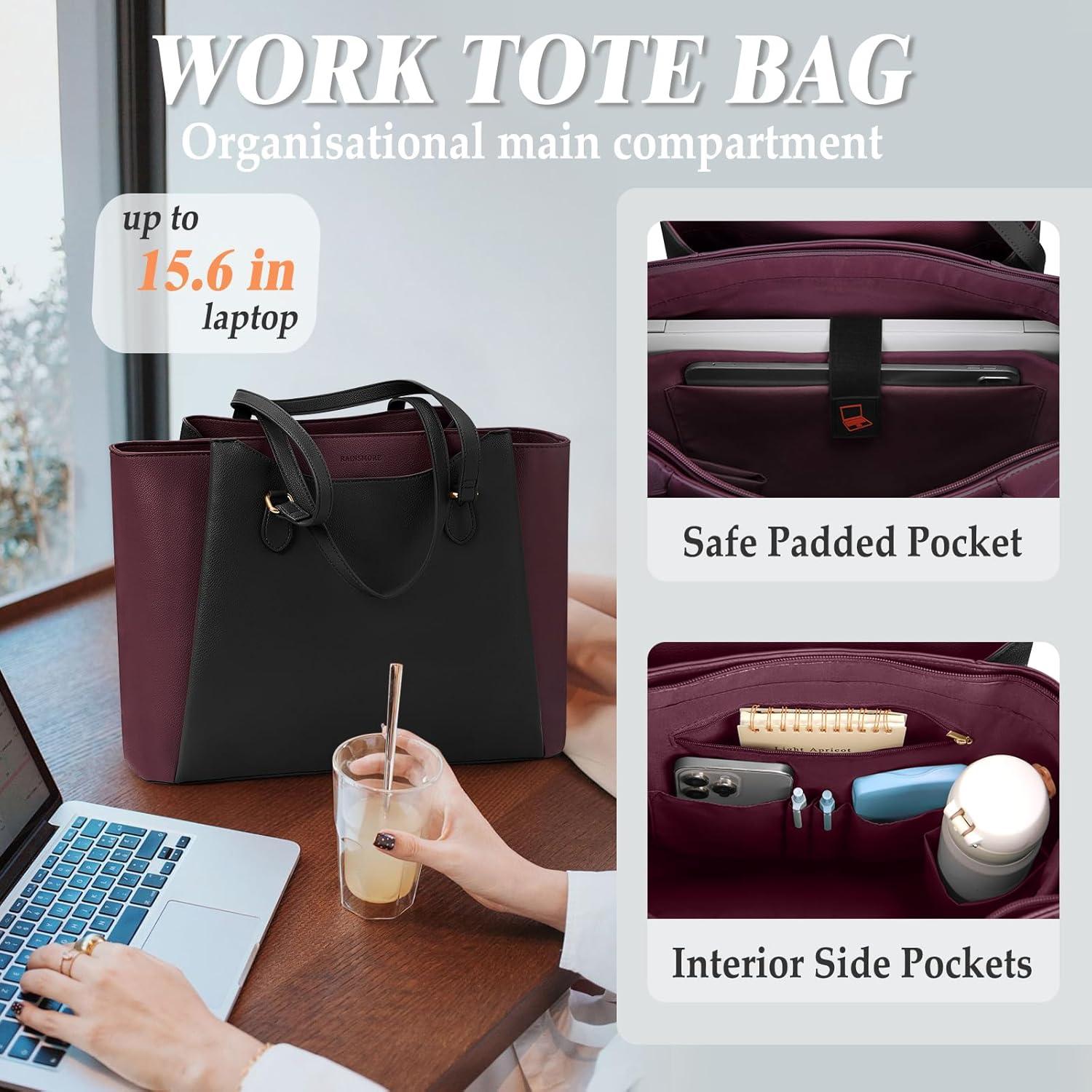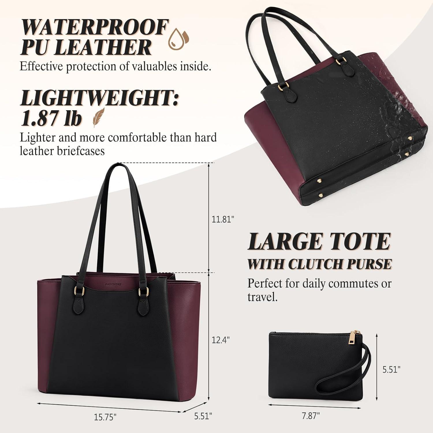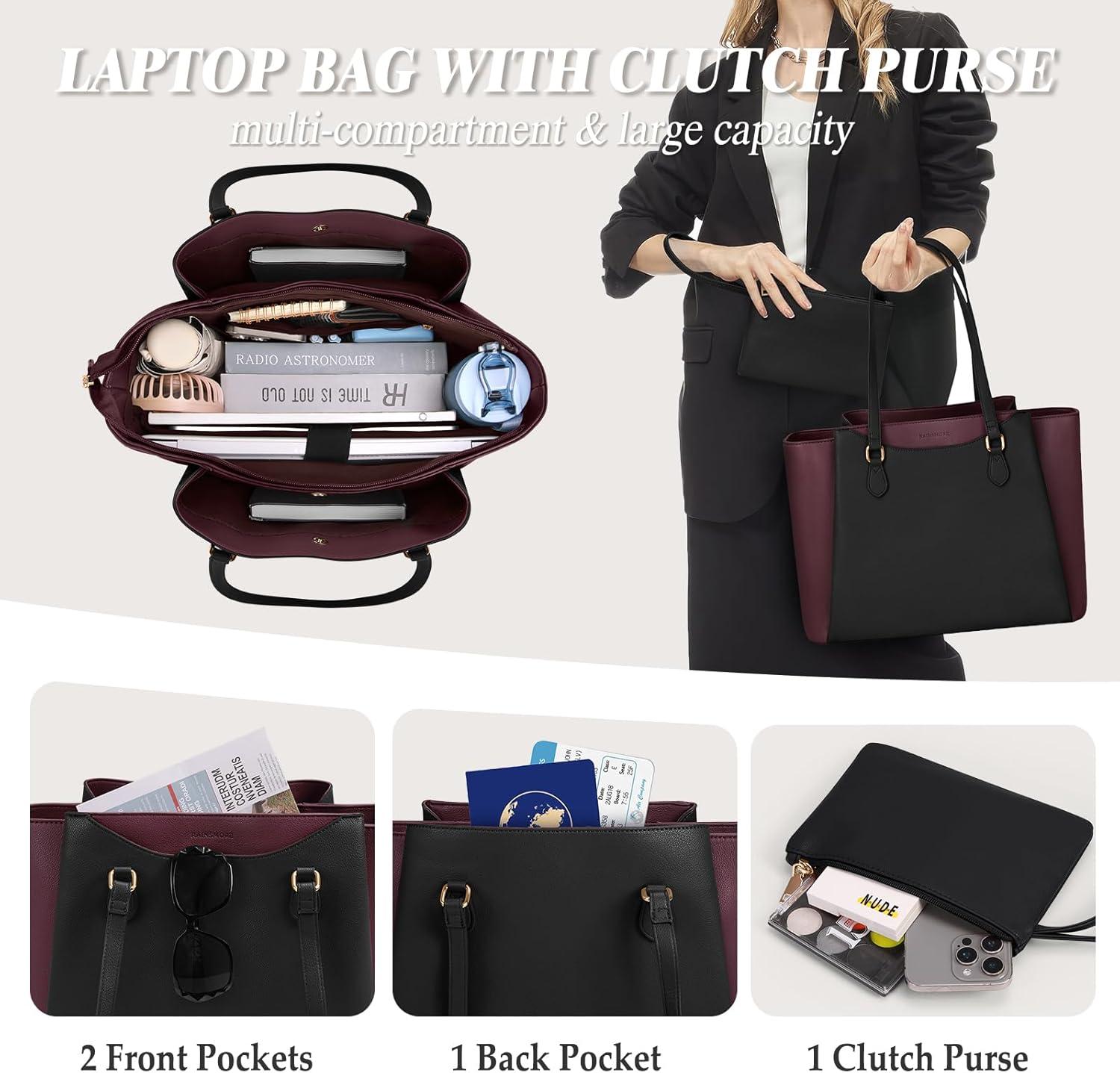 LAPTOP BAG WITH CLUTCH PURSE: This laptop tote bag also comes with a clutch purse to hold small essentials such as phones, keys, cards, glasses, or cosmetics. The compact size make it easy to hang from your wrist, or slip into the large laptop tote. Designed to be stylish and practical, this office bags for women is perfect for every woman who needs to carry a decent amount of stuff. This well made and beautiful tote bag for women is also a great gift for mom, wife, daughter or friend.