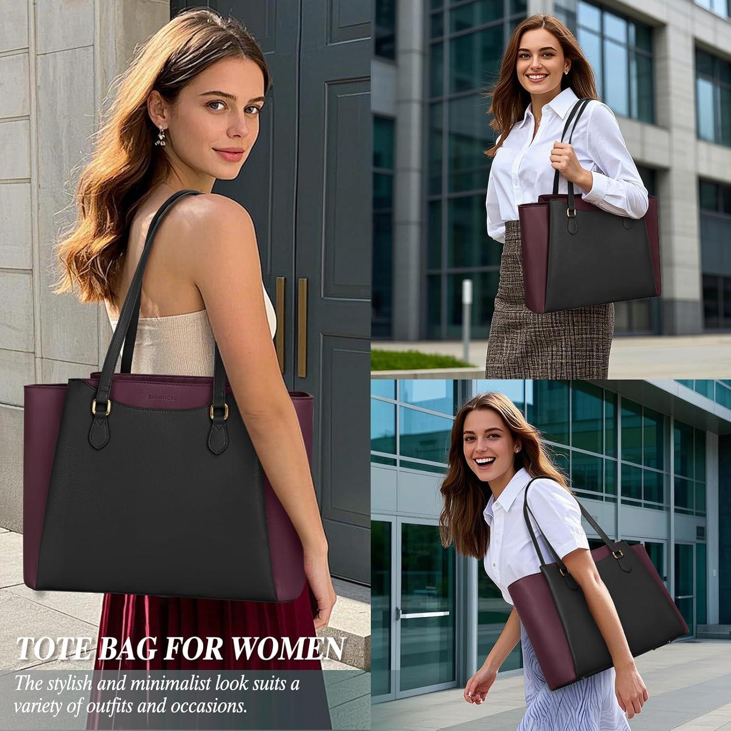 CHIC AND PRACTICAL LAPTOP BAG FOR WOMEN: This is a laptop tote bag for women who do not want to compromise between function and style. The minimalist chic appearance makes this leather tote bag a work-ready and casual pick. Pair perfectly with casual outfit, formal outfit, high heel or flat. The smooth zipper, reinforced stitching, and the exquisite and durable hardware, among other details, make this women's bag stand the test of time.