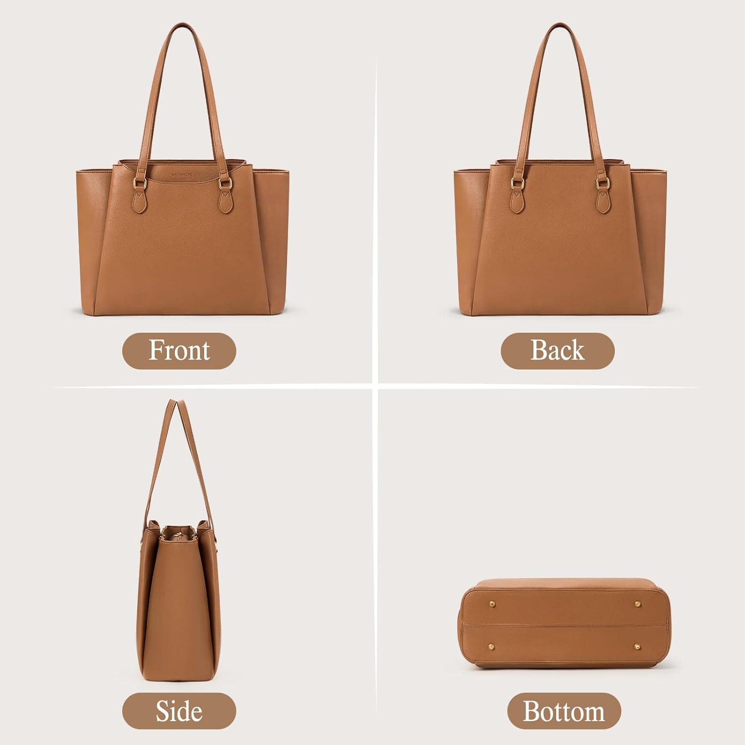 CHIC AND PRACTICAL LAPTOP BAG FOR WOMEN: This is a laptop tote bag for women who do not want to compromise between function and style. The minimalist chic appearance makes this leather tote bag a work-ready and casual pick. Pair perfectly with casual outfit, formal outfit, high heel or flat. The smooth zipper, reinforced stitching, and the exquisite and durable hardware, among other details, make this women's bag stand the test of time.
