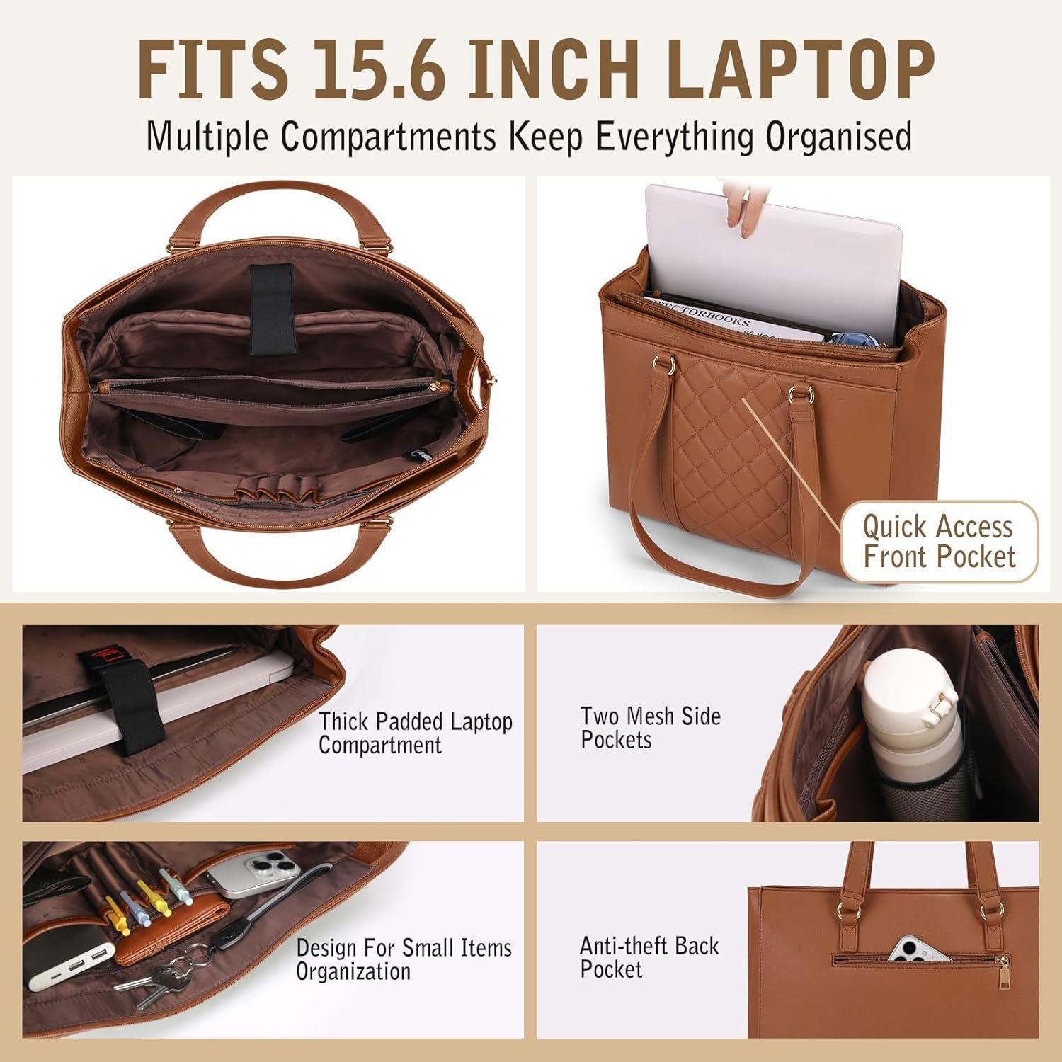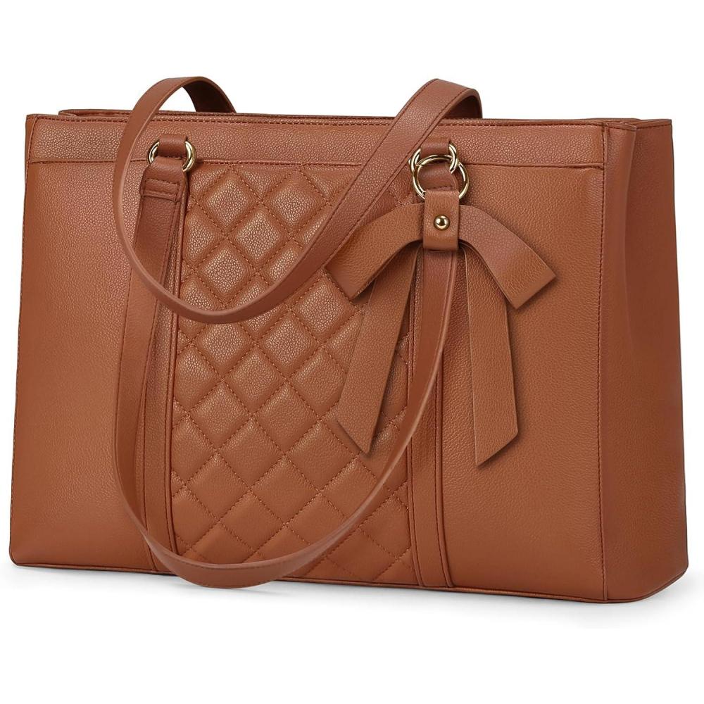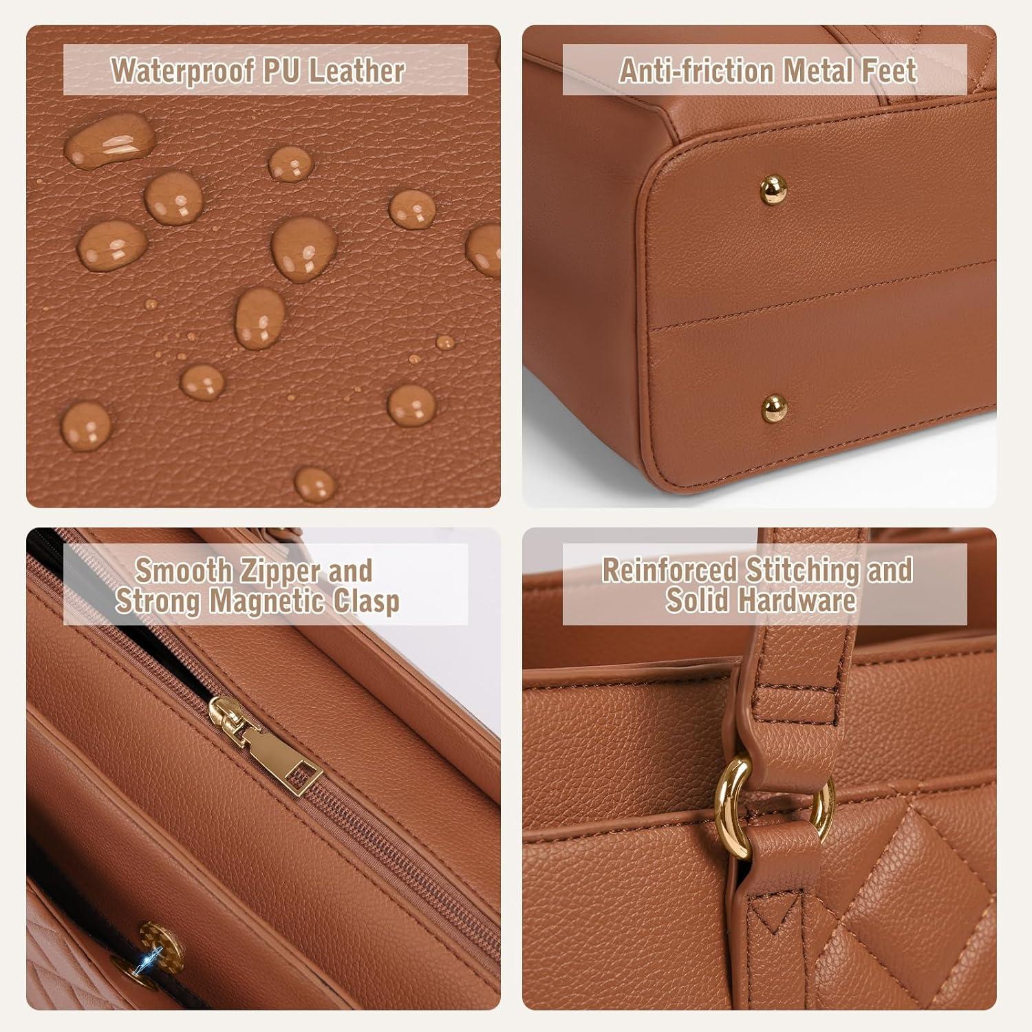 RAINSMORE Laptop Bag for Women 15.6 Inch Work Tote Bags Waterproof Leather Laptop Tote Professional Computer Briefcase(Brown)