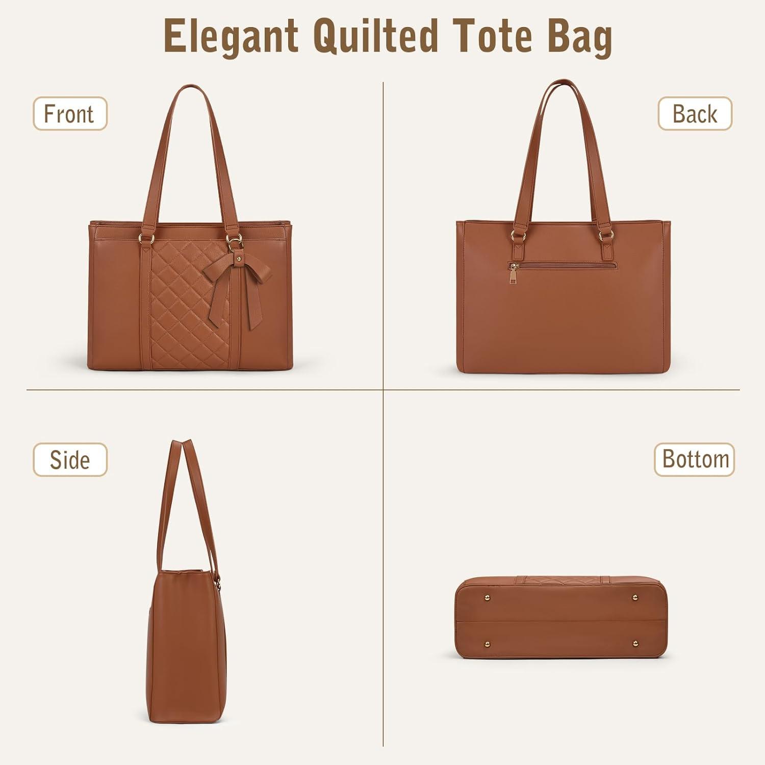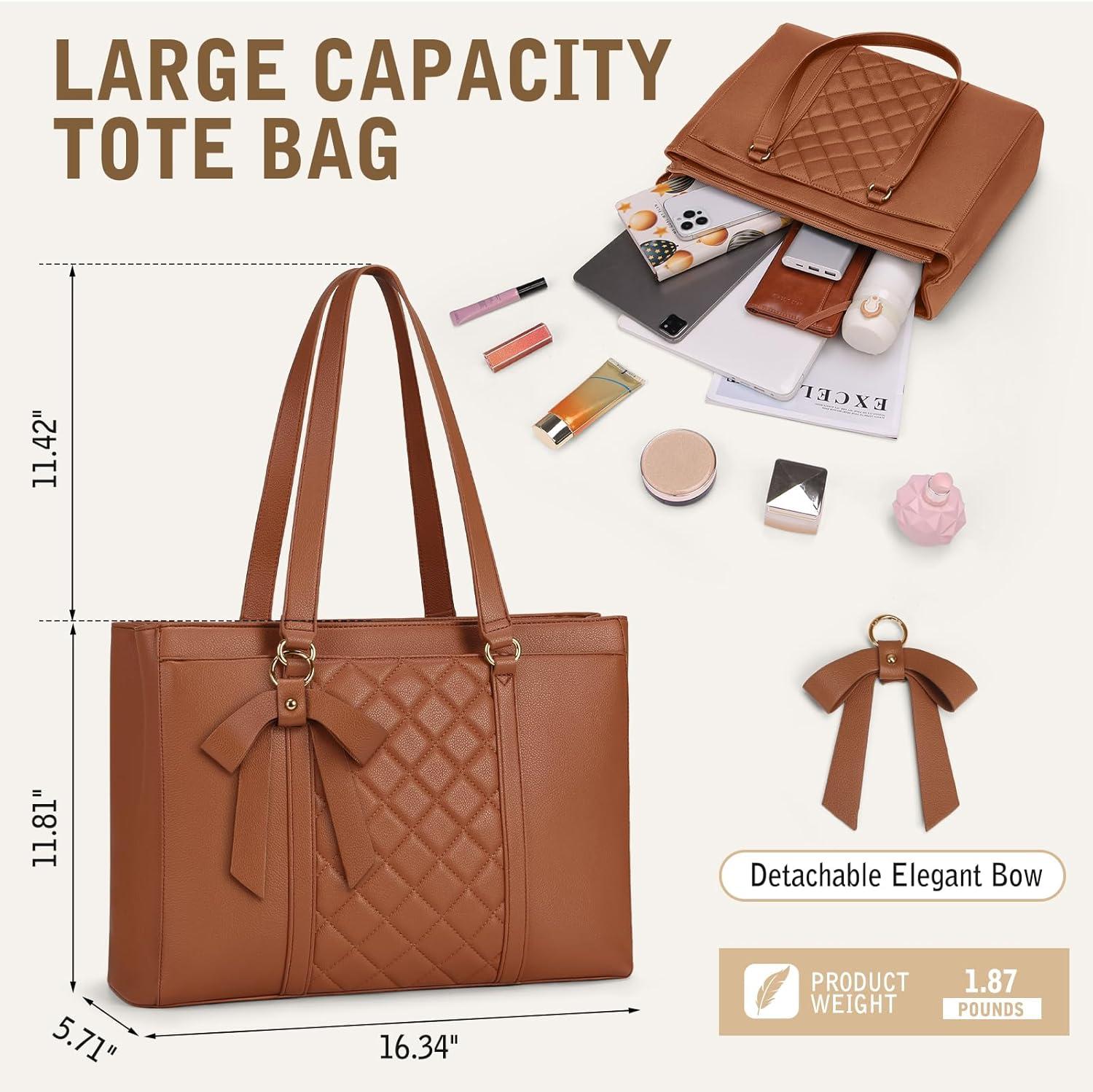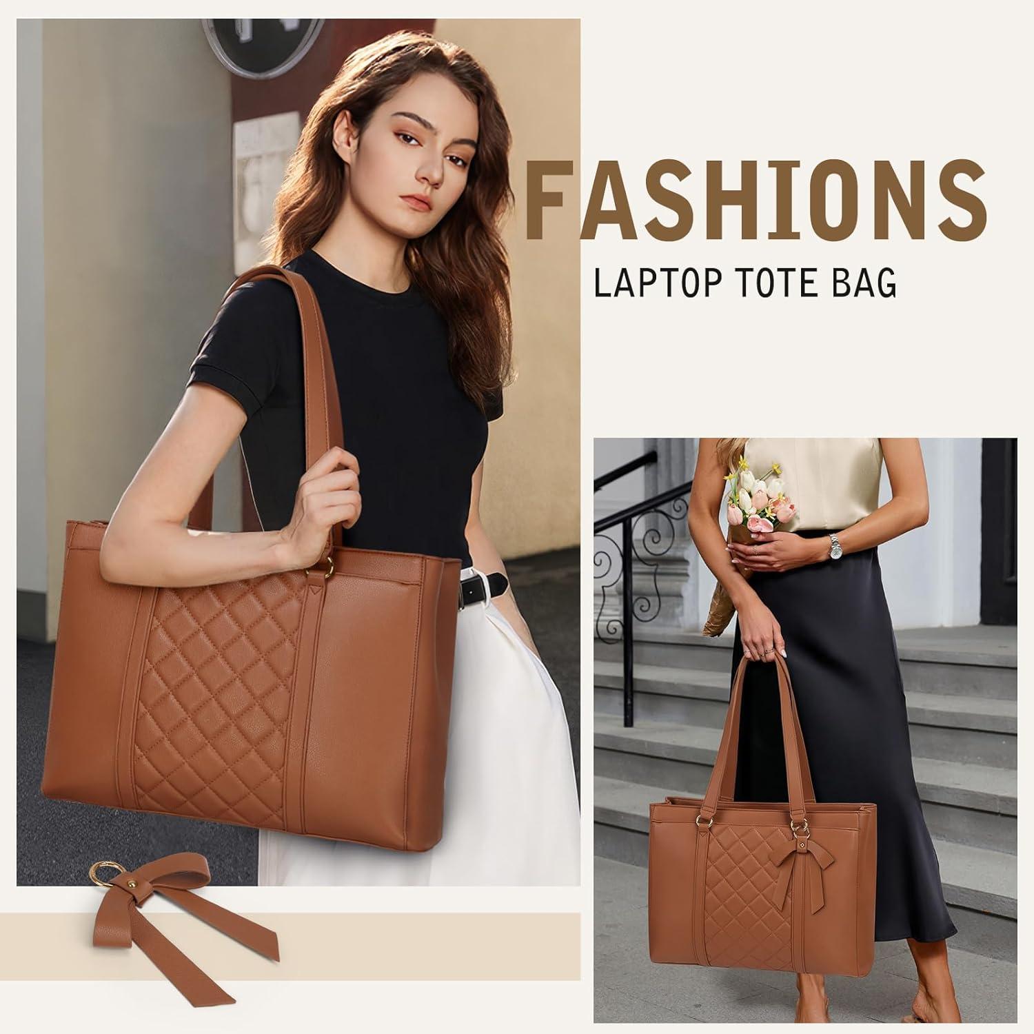 RAINSMORE Laptop Bag for Women 15.6 Inch Work Tote Bags Waterproof Leather Laptop Tote Professional Computer Briefcase(Brown)