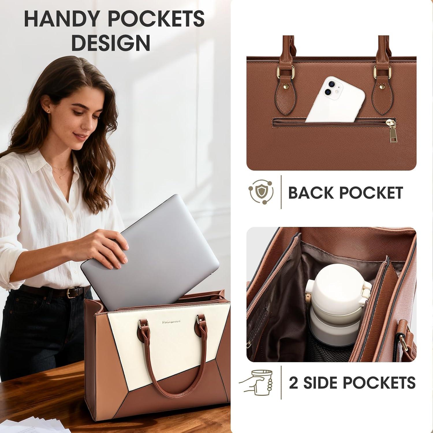 imageRAINSMORE Laptop Tote Bag for Women 156 Inch Large Women Work Bags Waterproof Business Office Teacher Bag Computer BriefcaseBrownwhite
