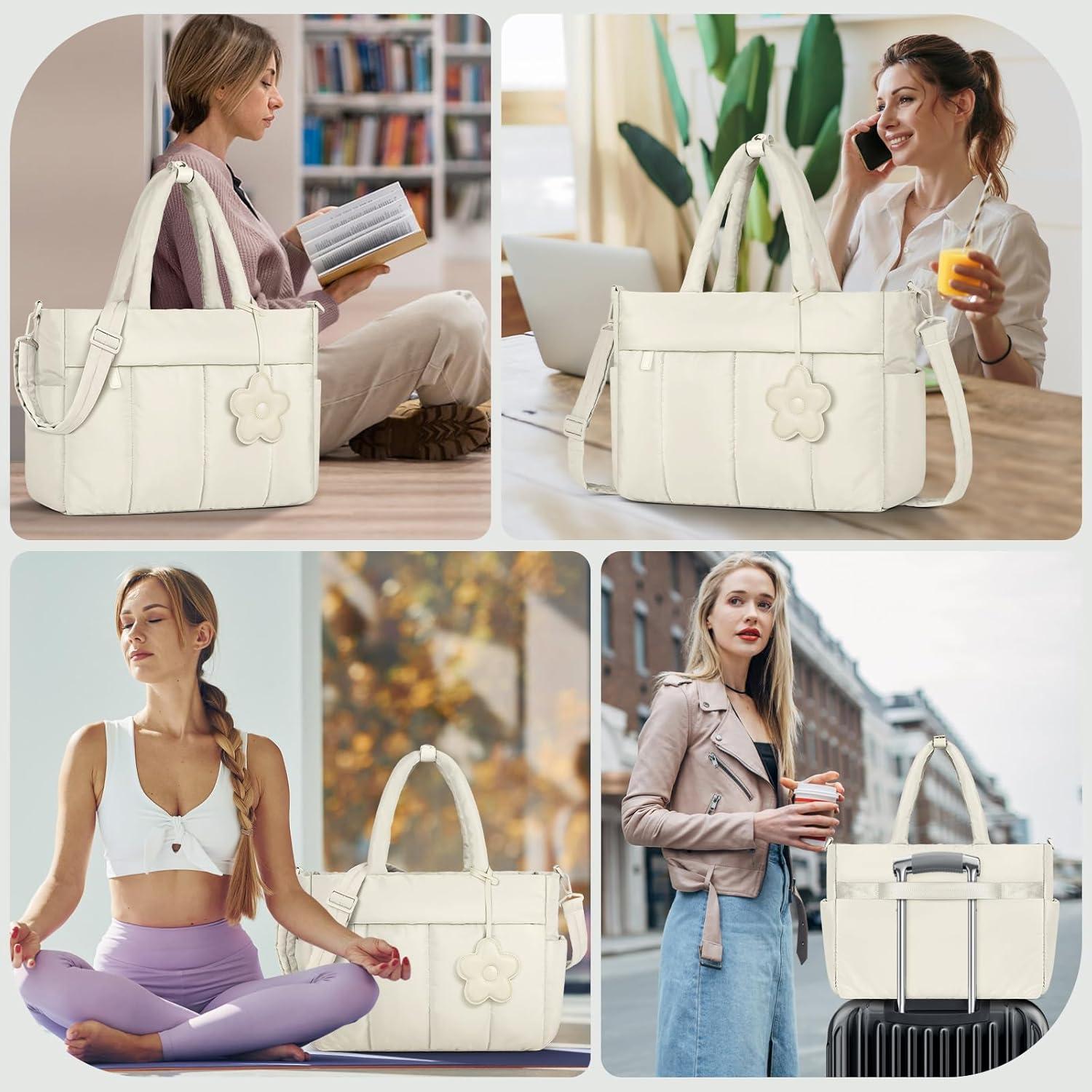 Ultra-Light & Durable Material: This puffer tote bag is ultra-lightweight, weighing only 1.1 lbs. It is made from premium, durable, soft, and lightweight materials, making it easy to carry all day long. Its soft texture provides comfort, while the tough exterior ensures it can withstand everyday wear and tear. It’s the perfect companion for work, travel, or leisure, without adding any extra weight.