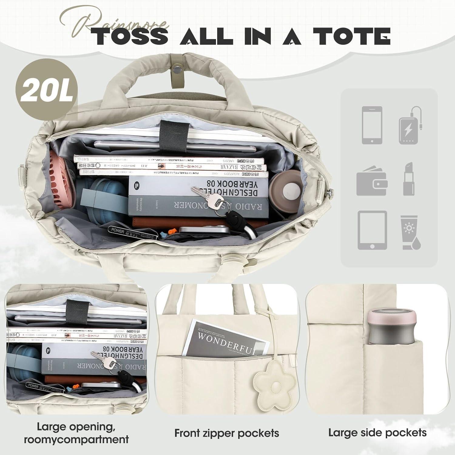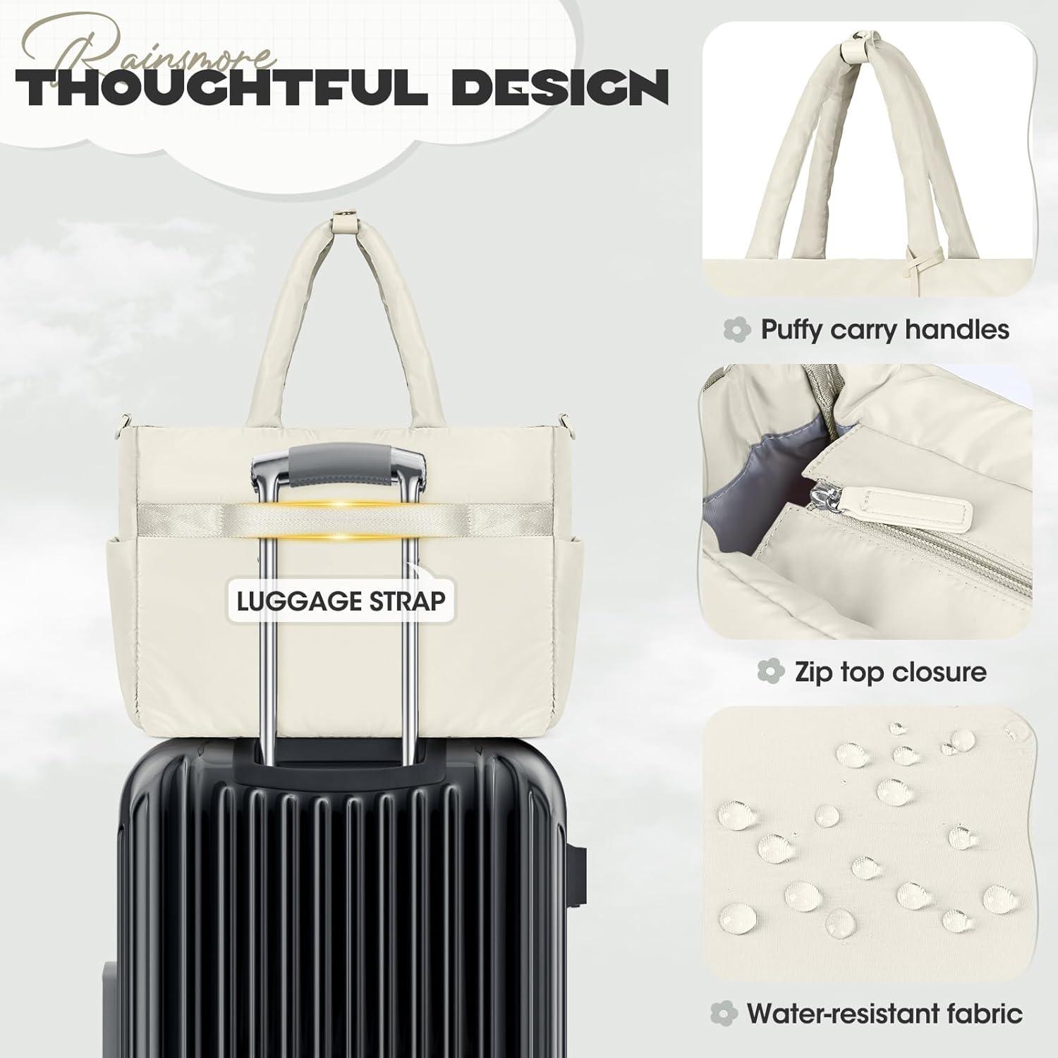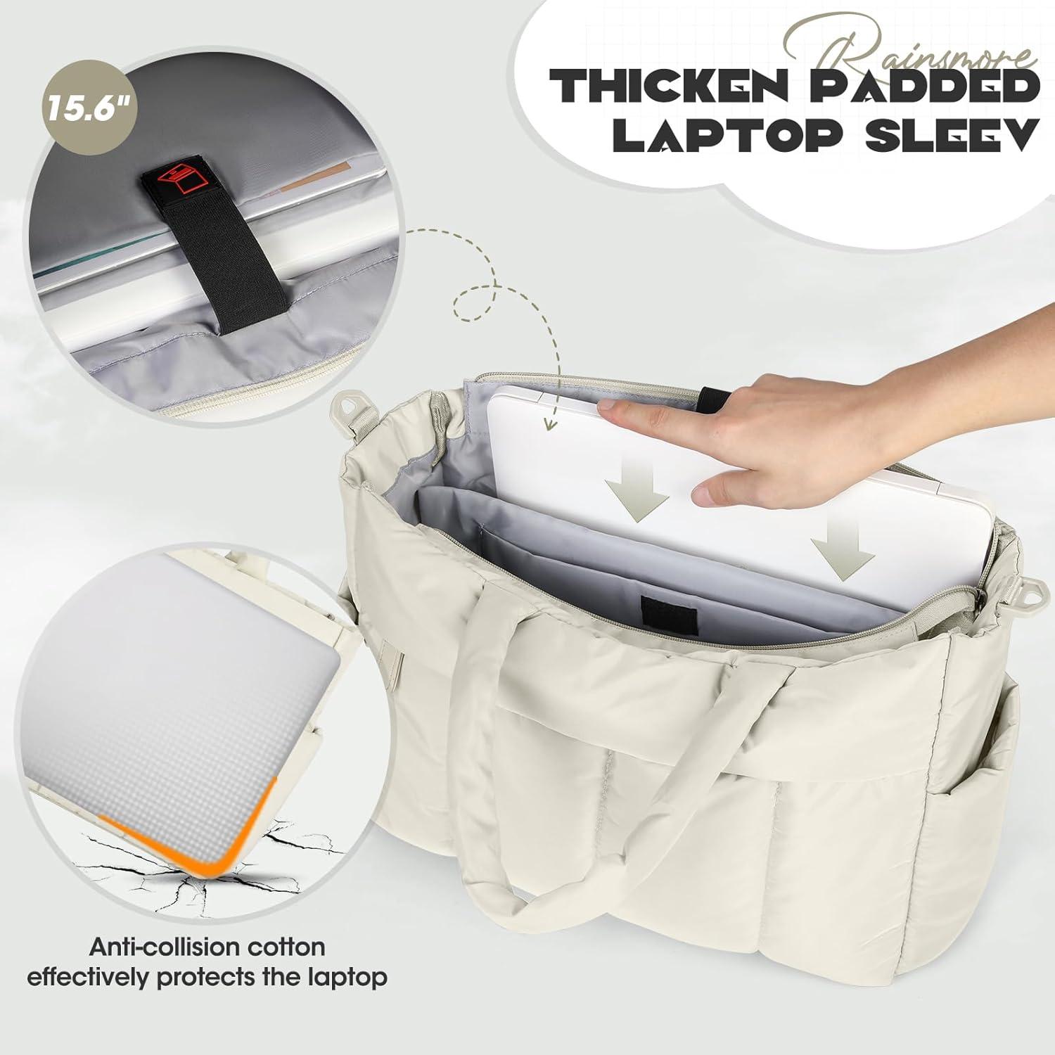imageRAINSMORE Laptop Tote Bag for Women 156 Inch Lightweight Puffer Work Tote Bag Quilted Travel Bags with Shoulder Strap Large Computer Briefcase Teacher Nurse Bag for Casual Office Travel BeigeBeige