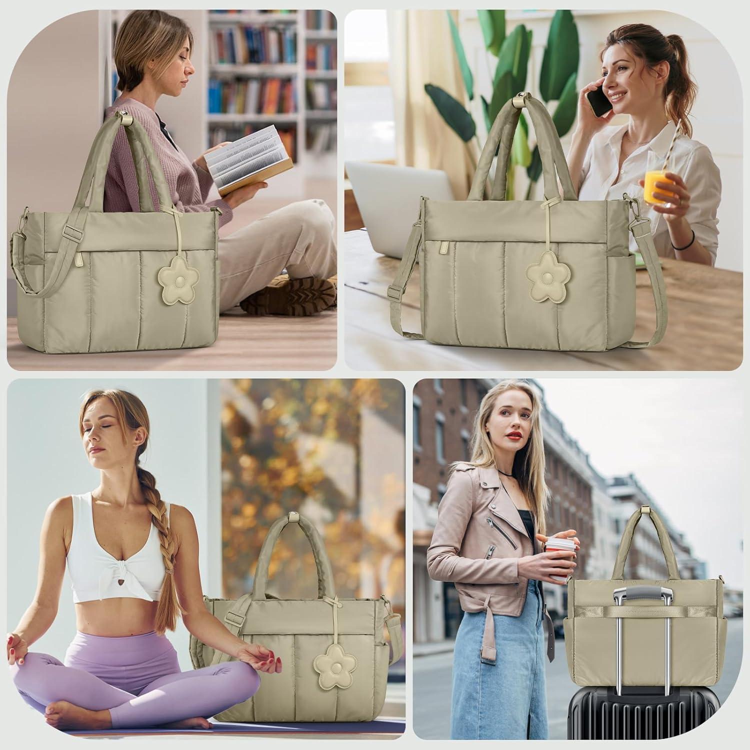 Ultra-Light & Durable Material: This puffer tote bag is ultra-lightweight, weighing only 1.1 lbs. It is made from premium, durable, soft, and lightweight materials, making it easy to carry all day long. Its soft texture provides comfort, while the tough exterior ensures it can withstand everyday wear and tear. It’s the perfect companion for work, travel, or leisure, without adding any extra weight.