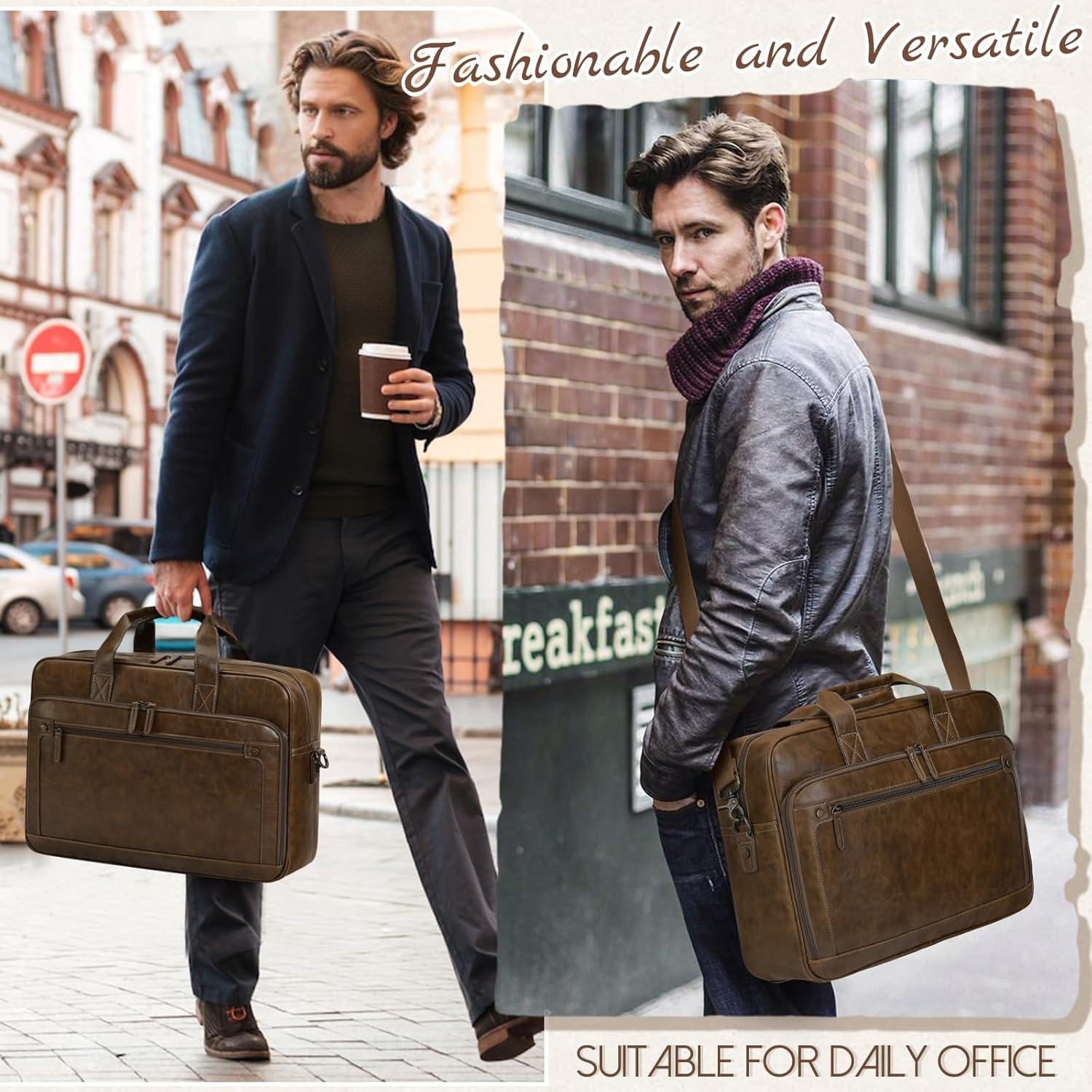Practical Work Bag for Men: Our computer bag has a comfortable leather handle, which is practical and comfortable. The main compartment and front compartment have dual zippers for smooth and convenient use; the sturdy metal buckle can be easily converted from a handbag to shoulder bag. In addition, the luggage strap on the back allows the bag to fit snugly in the suitcase, freeing your hands and making travel more comfortable.