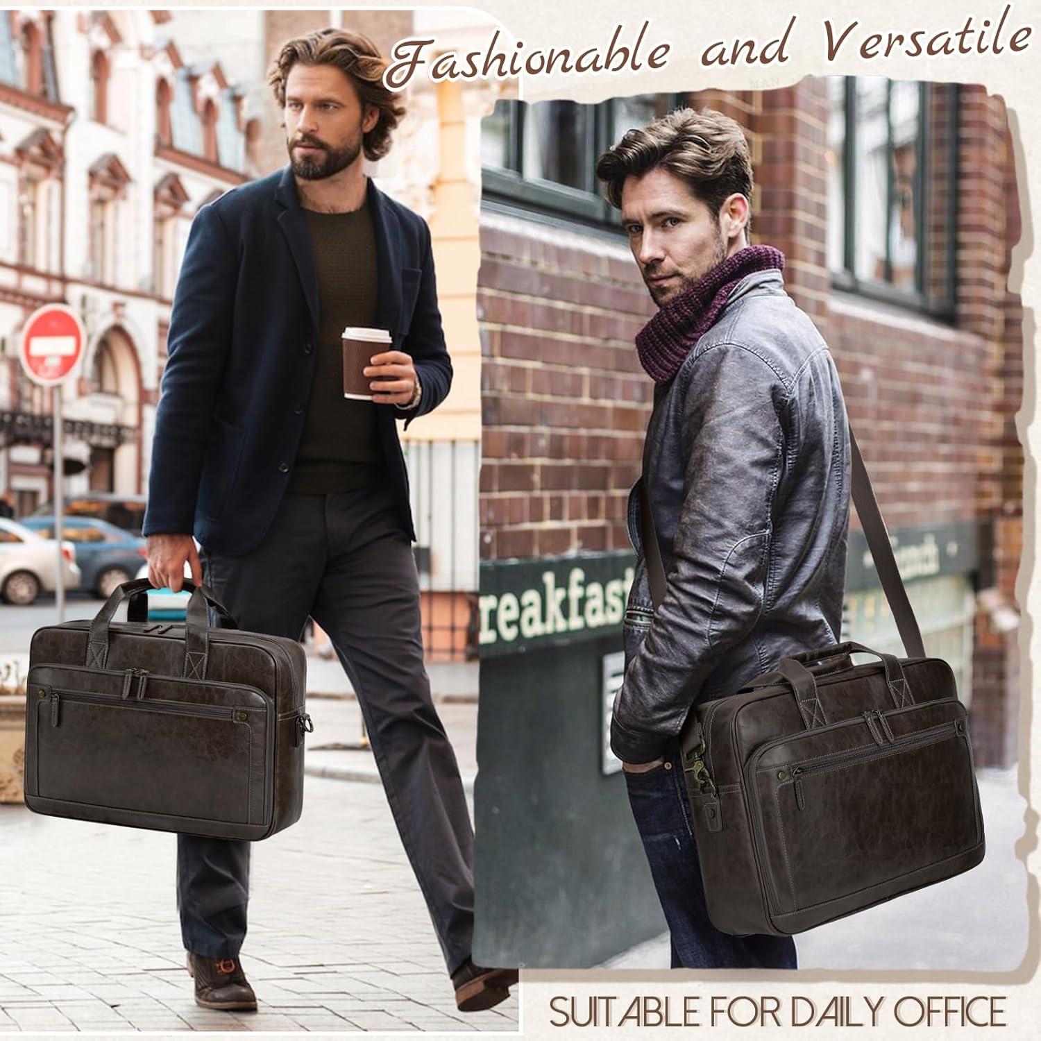 Practical Work Bag for Men: Our computer bag has a comfortable leather handle, which is practical and comfortable. The main compartment and front compartment have dual zippers for smooth and convenient use; the sturdy metal buckle can be easily converted from a handbag to shoulder bag. In addition, the luggage strap on the back allows the bag to fit snugly in the suitcase, freeing your hands and making travel more comfortable.