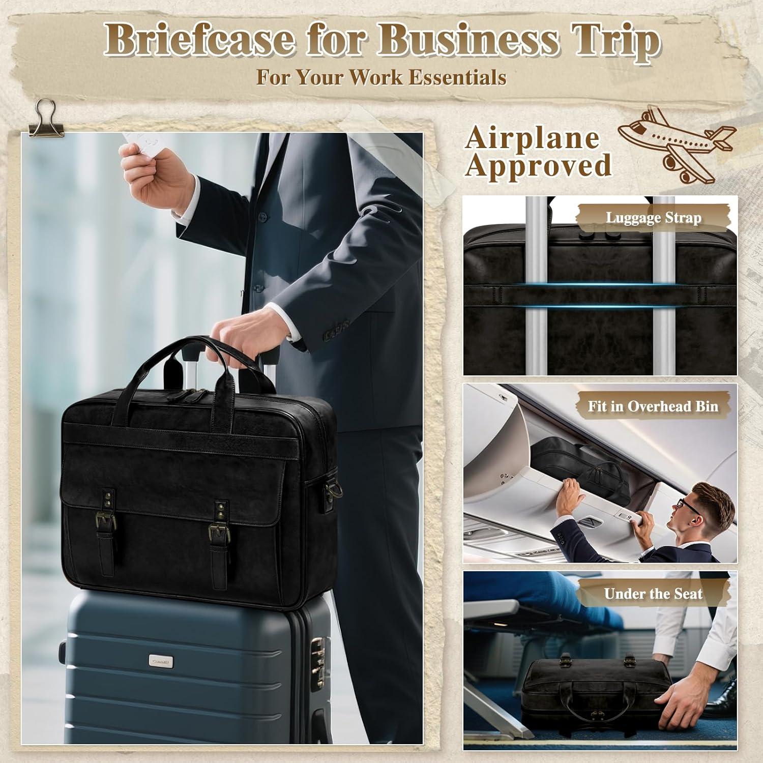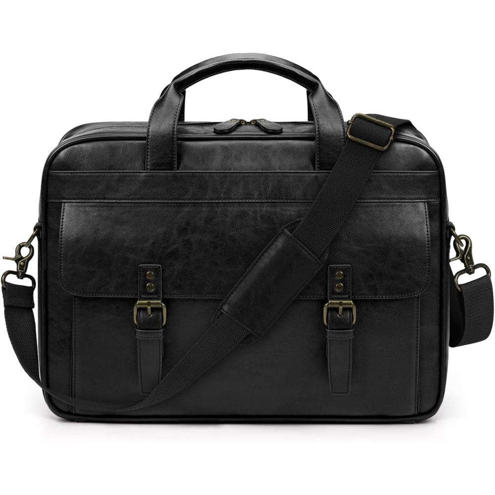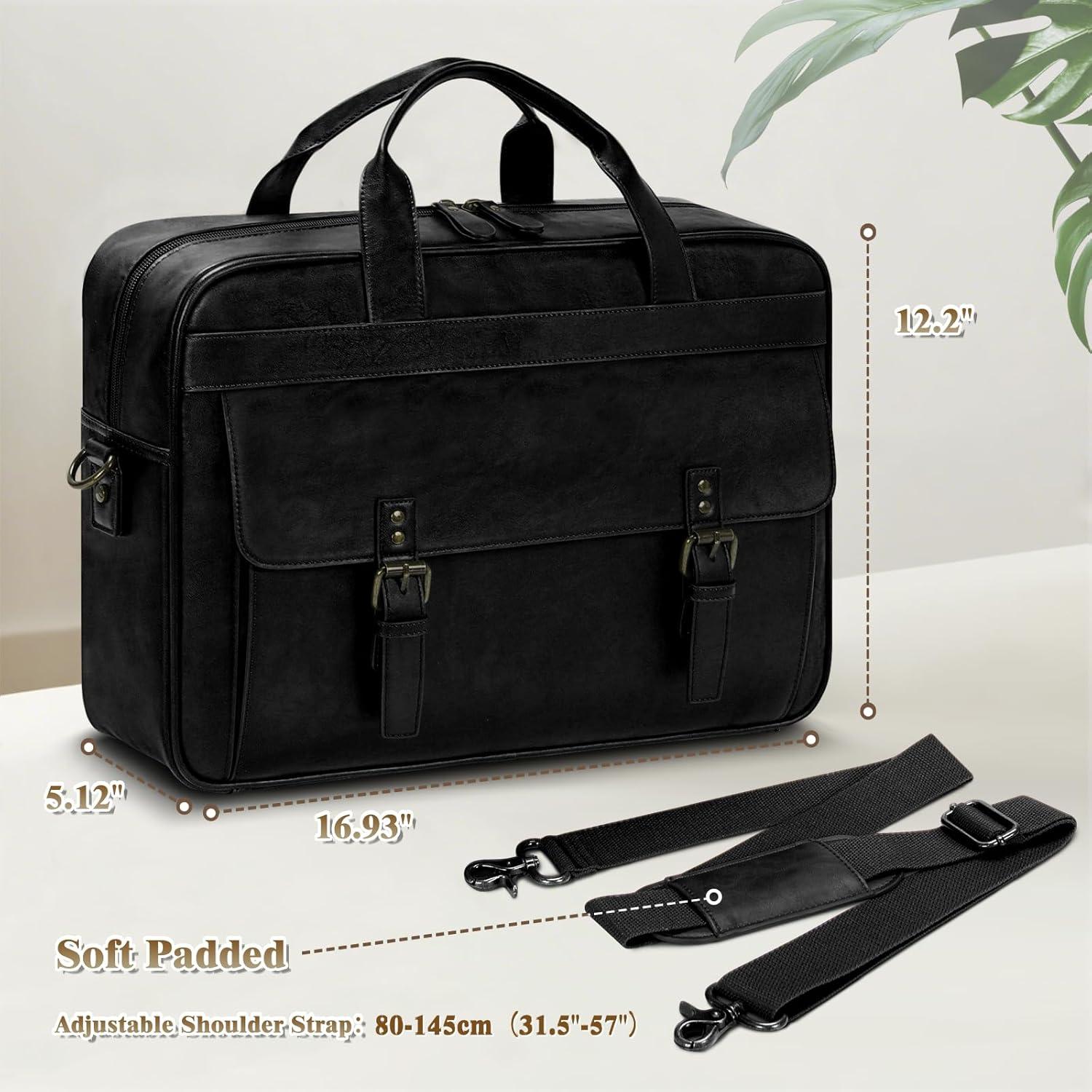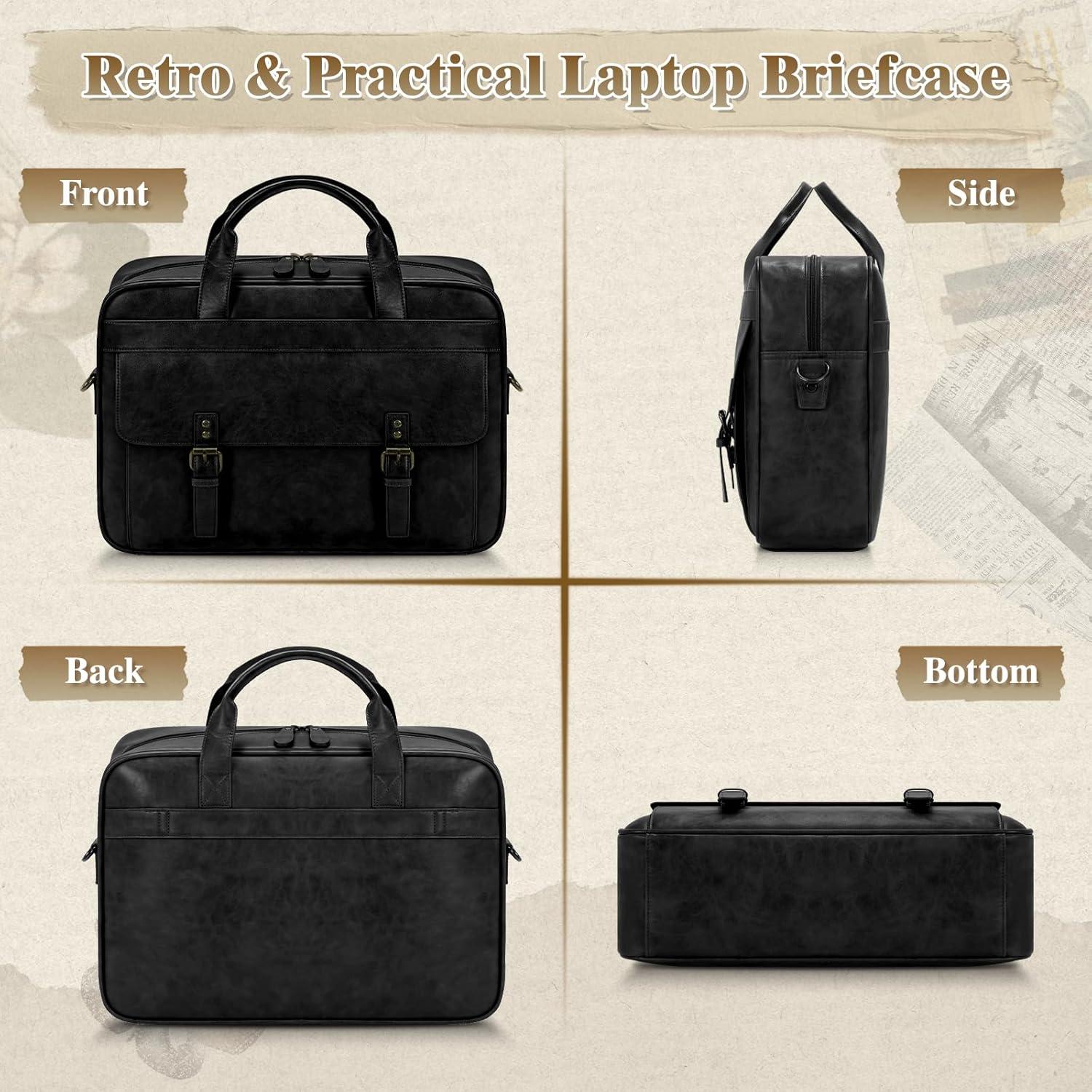 imageRAINSMORE Messenger Bag for Men 16 Inch Laptop Bag Vintage Leather Waterproof Laptop Briefcases Large Computer Satchel BagBlack
