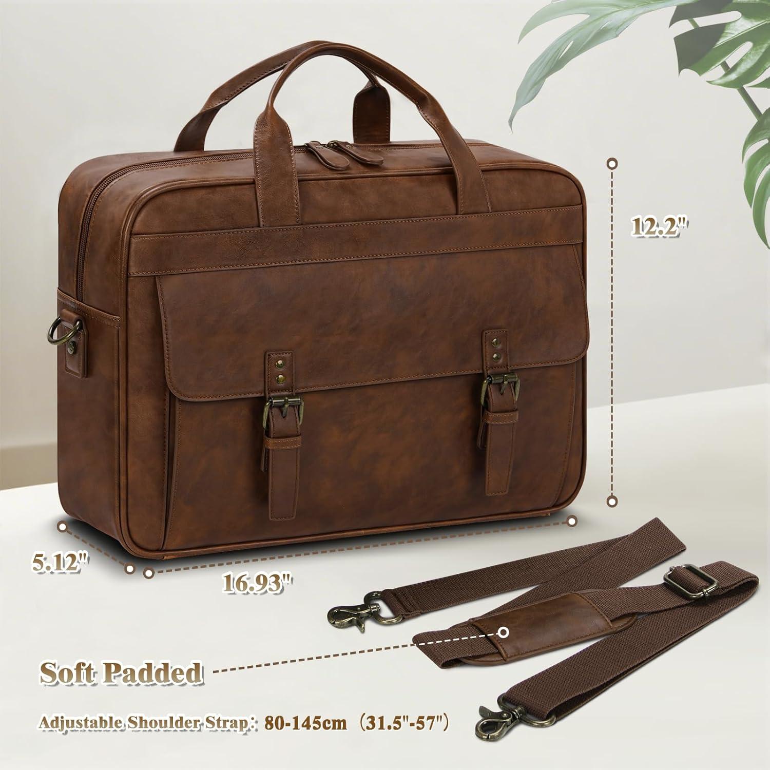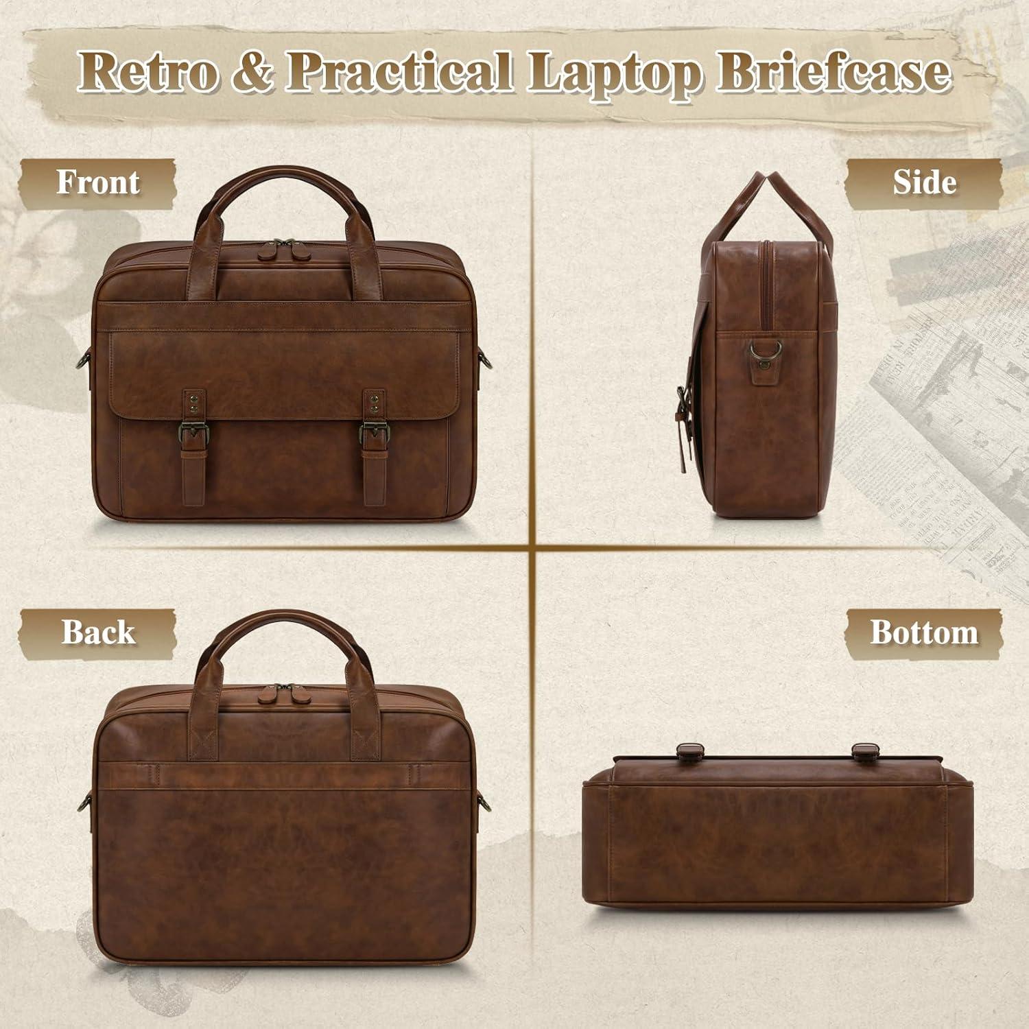RAINSMORE Messenger Bag for Men 16 Inch Laptop Bag Vintage Leather Waterproof Laptop Briefcases Large Computer Satchel Bag(Dark Brown)
