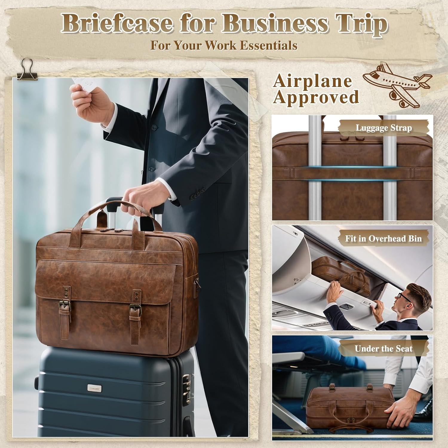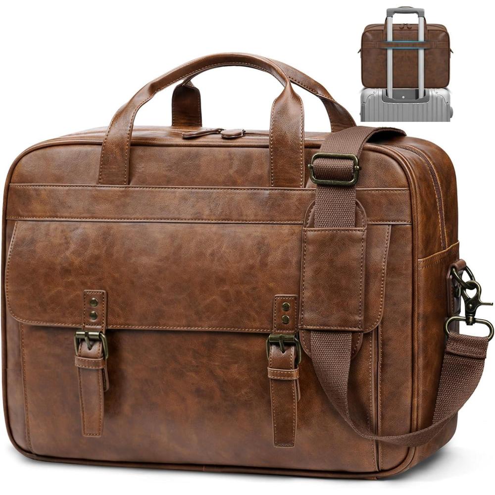imageRAINSMORE Messenger Bag for Men 16 Inch Laptop Bag Vintage Leather Waterproof Laptop Briefcases Large Computer Satchel BagBrown