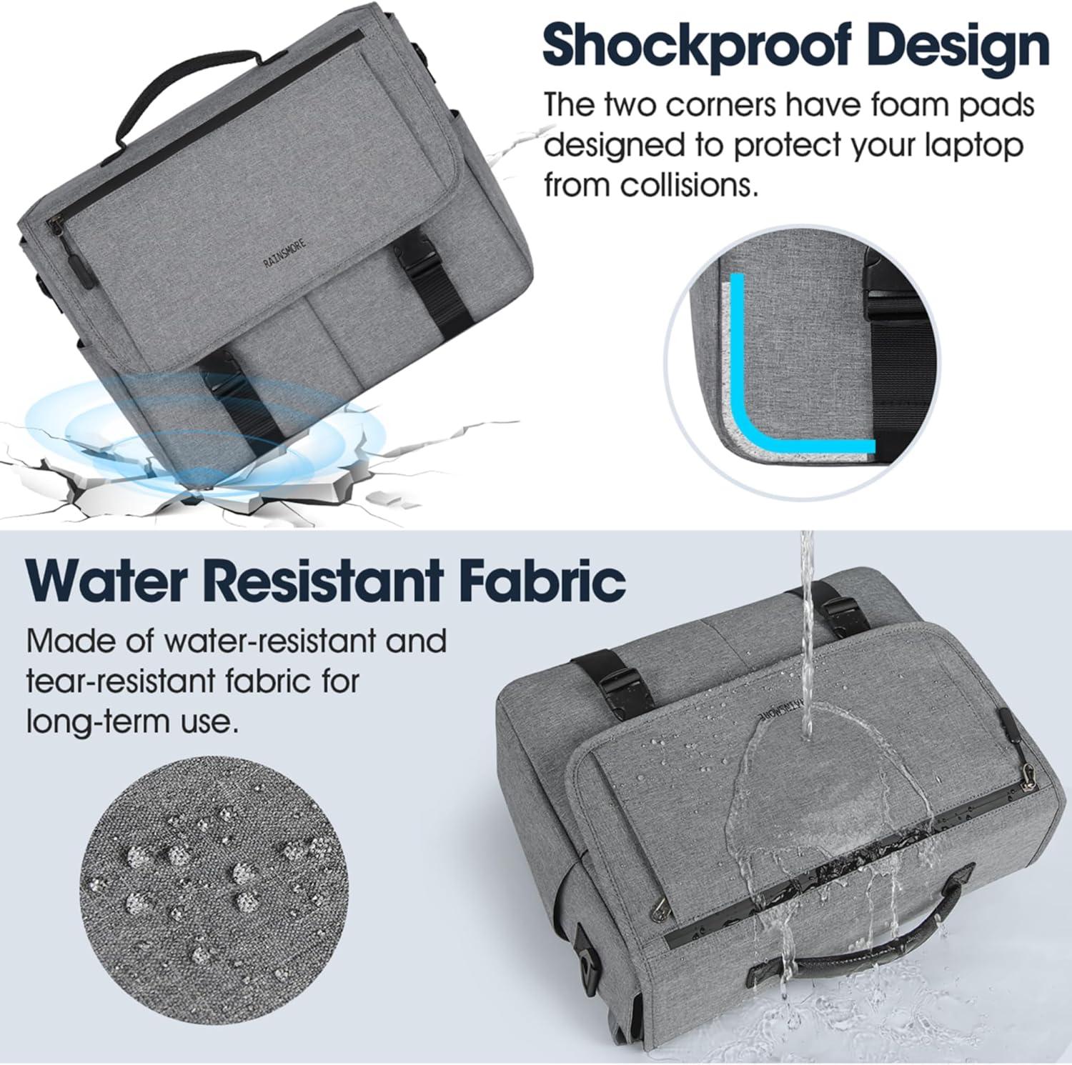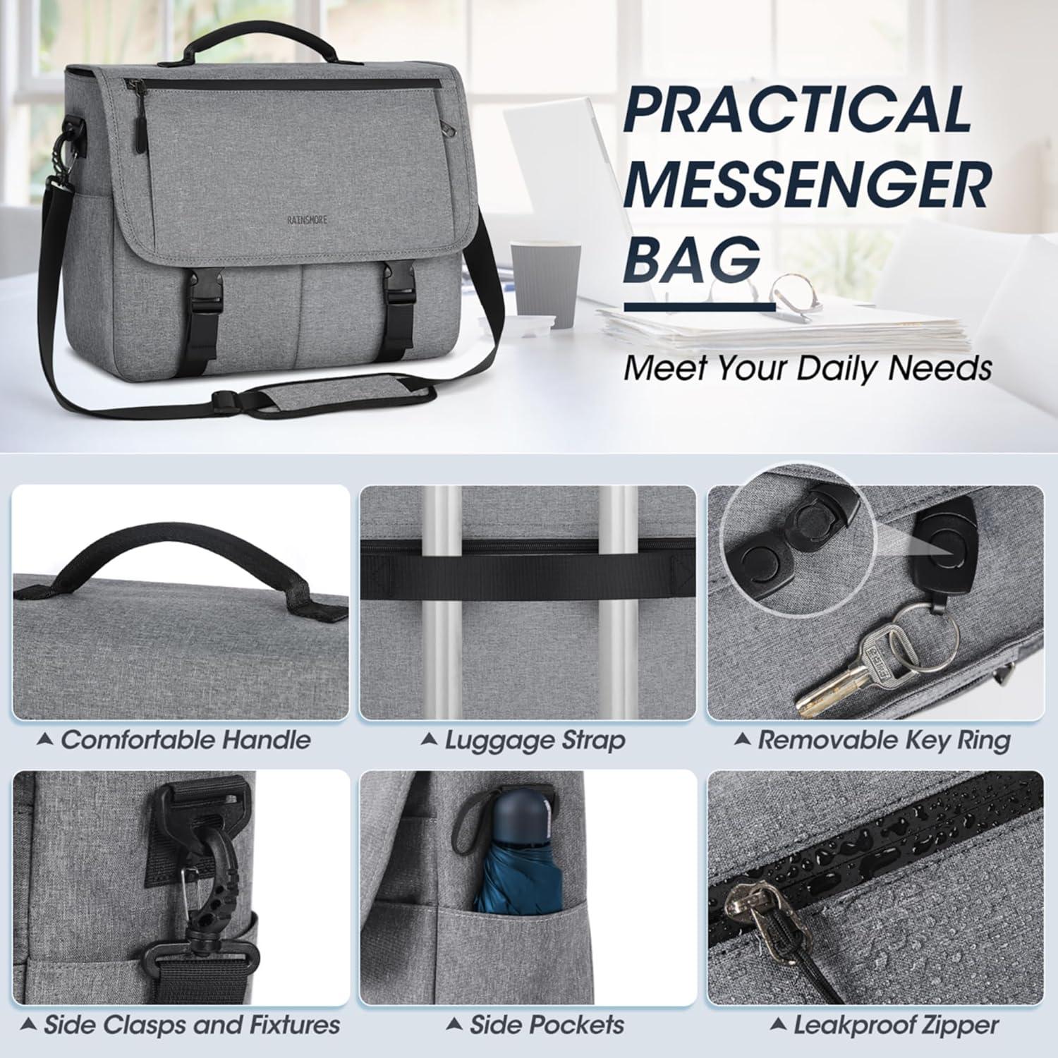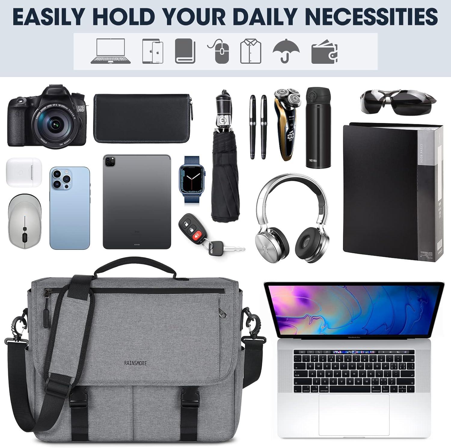 【Durable Messenger Bag】 This messenger bag is made of durable, scratch-resistant and water resistant polyester fabric. Messenger bag for men equipped with smooth zipper and sturdy handle, plus the reinforced stitching at each stress point, make this laptop bag more durable for long-term use. Also, the briefcase has a front pocket which adopts leakproof zipper design can protect your belongings in rainy days.