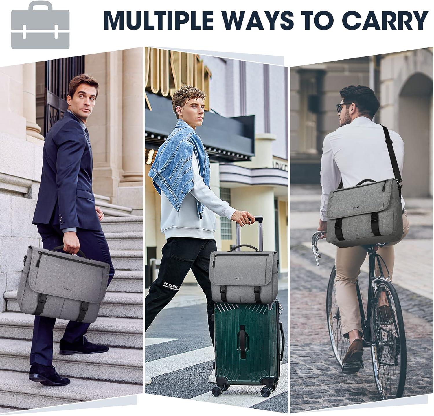 【Laptop Bag Size】 The size of the messenger bag is 16.1″ L * 5.1″ W * 13″ H, the detachable and removable shoulder strap length 33.9-55.9 inches, you could adjust length to meet your demand. Also, this satchel bag is designed with humanized cushioned handle and padded shoulder strap, which can better reduce your travel load and carry comfortably. It can be used as a messenger bag for work, business laptop bag, travel briefcase, crossbody shoulder bag, handbag and so on.