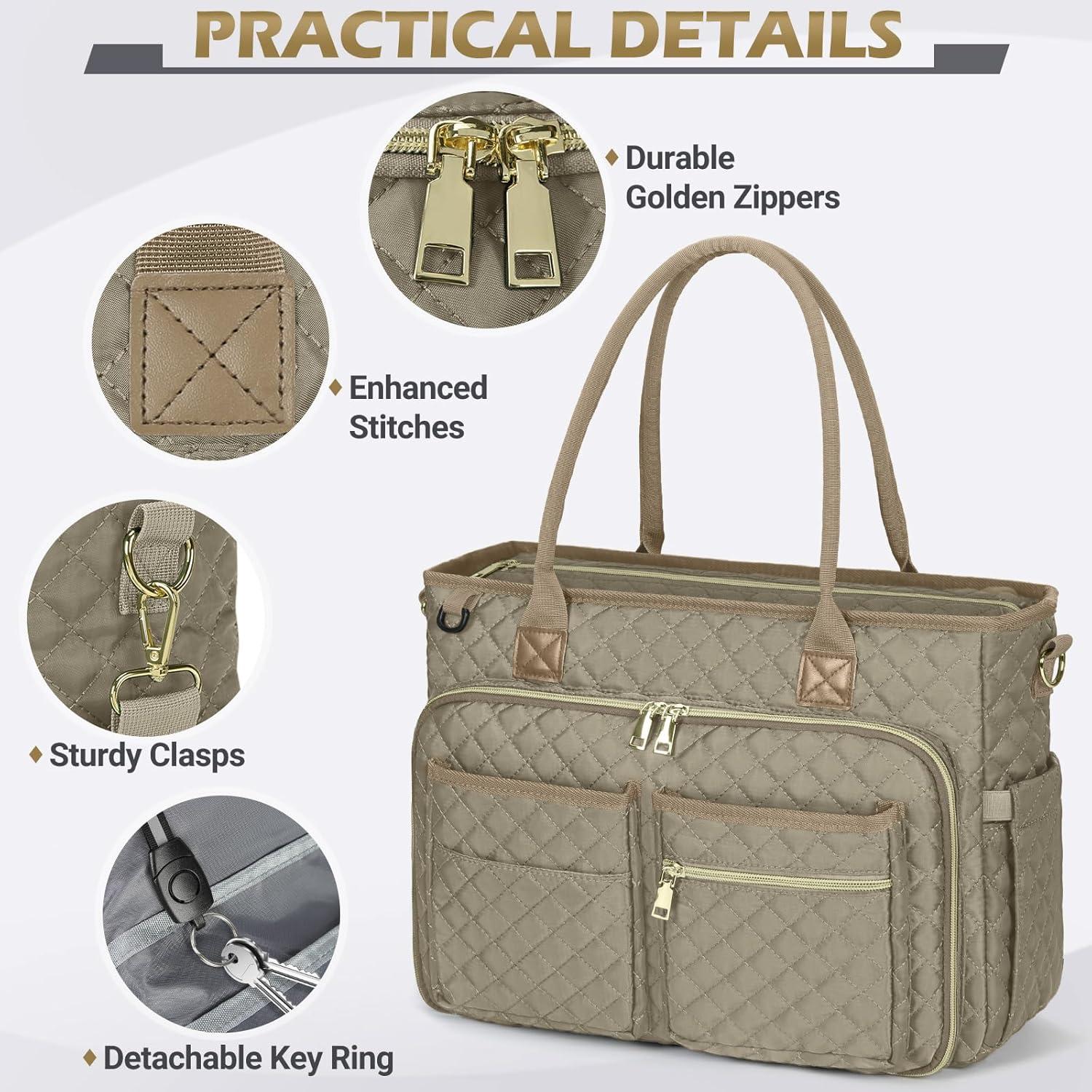 LONG LASTING MATERIALS- Made of durable water & scratch resistant polyester fabric, with smooth golden zippers, sturdy handle, and adjustable padded shoulder straps, nurse work bag prefect combination of stylish and functional. Reinforced stitching at each stress point ensures the laptop briefcase durability for long-term performance. High quality quilted teacher laptop tote bag aims to provide a sturdy and reliant user experience