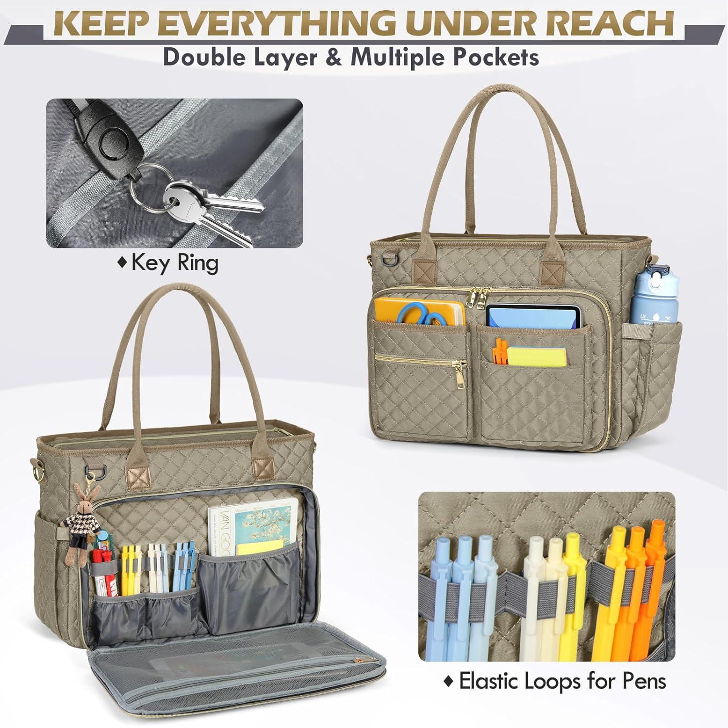 IDEAL GIFT CHOICE- Laptop tote with combined elegant appearance and practical design. Large capacity and multiple storages make it a great choice to use as a teacher bag, nursing bag, professional work bag, business travel bag, or weekend getaway carry-on bag. Perfect for commuting teachers, tutors, nurses, business ladies, etc. Ideal gift for teachers, nurses, and parents, on any holidays, birthdays, or anniversaries. And also ideal Teacher Appreciation Gifts